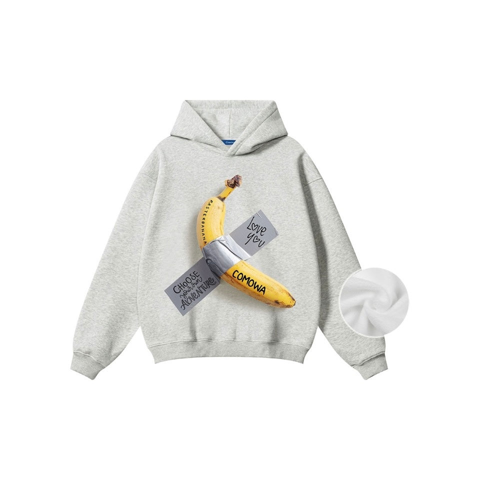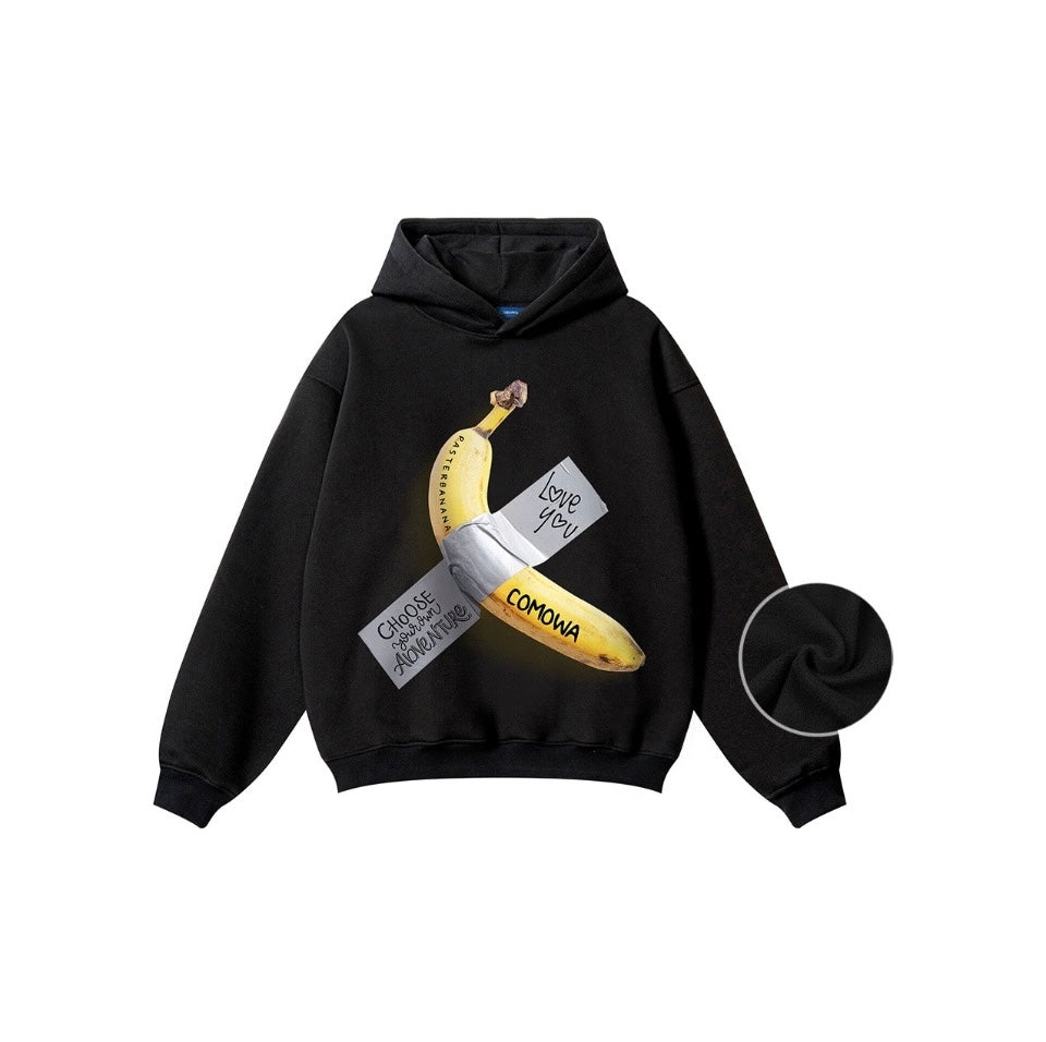 360 Grams of heavyweight Chinese cotton. Hip Hop Fun Banana Letter Logo Print Sexless Loose Casual Comfortable Pullover Hooded Long Sleeve Sweatshirt Men's and Women's Padded and Thickened