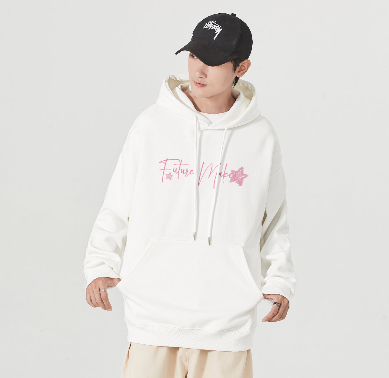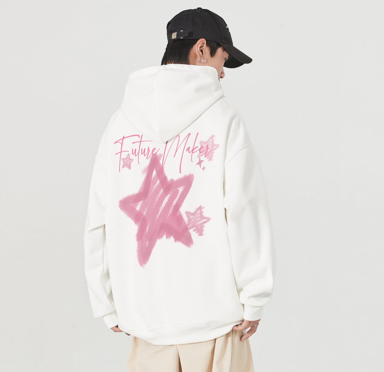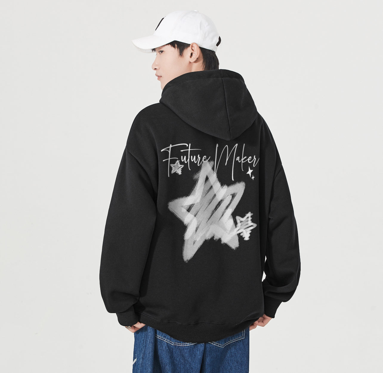 Graffiti stars letter Logo print casual loose pullover hooded sweatshirt