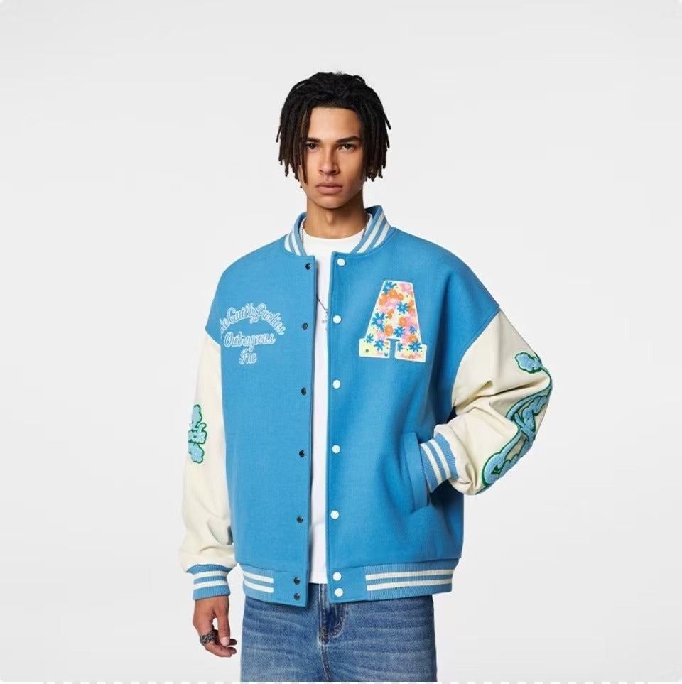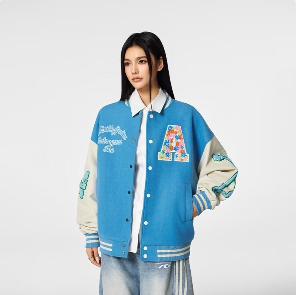 Skeleton embroidery heavy crafted baseball wear national trend casual jacket.