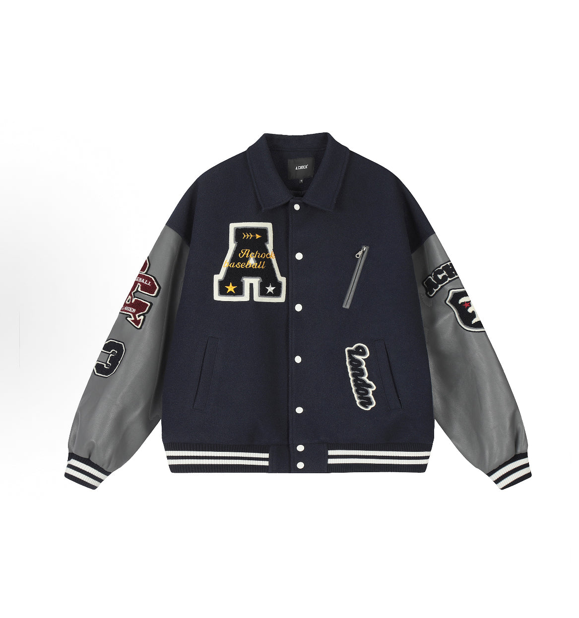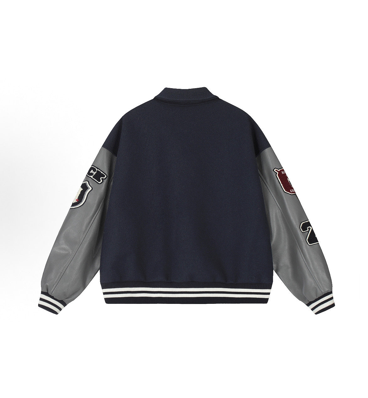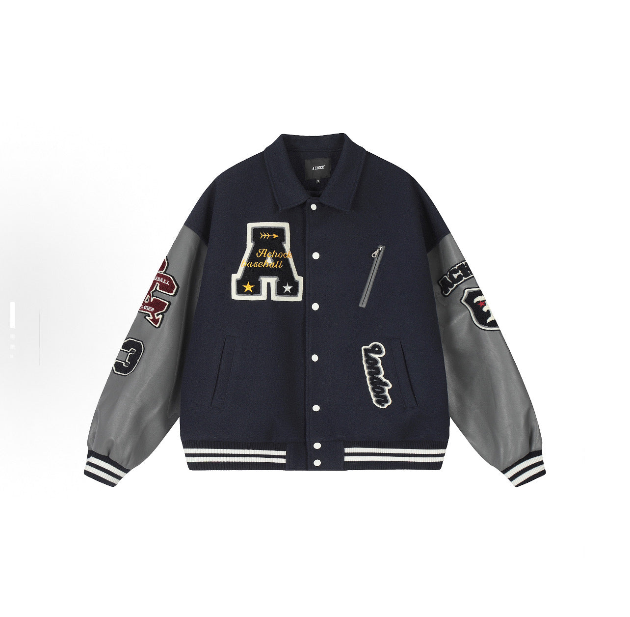 A chock American embroidered Fall/Winter Loose Bomber Jacket Baseball uniform men's and women's navy blue.