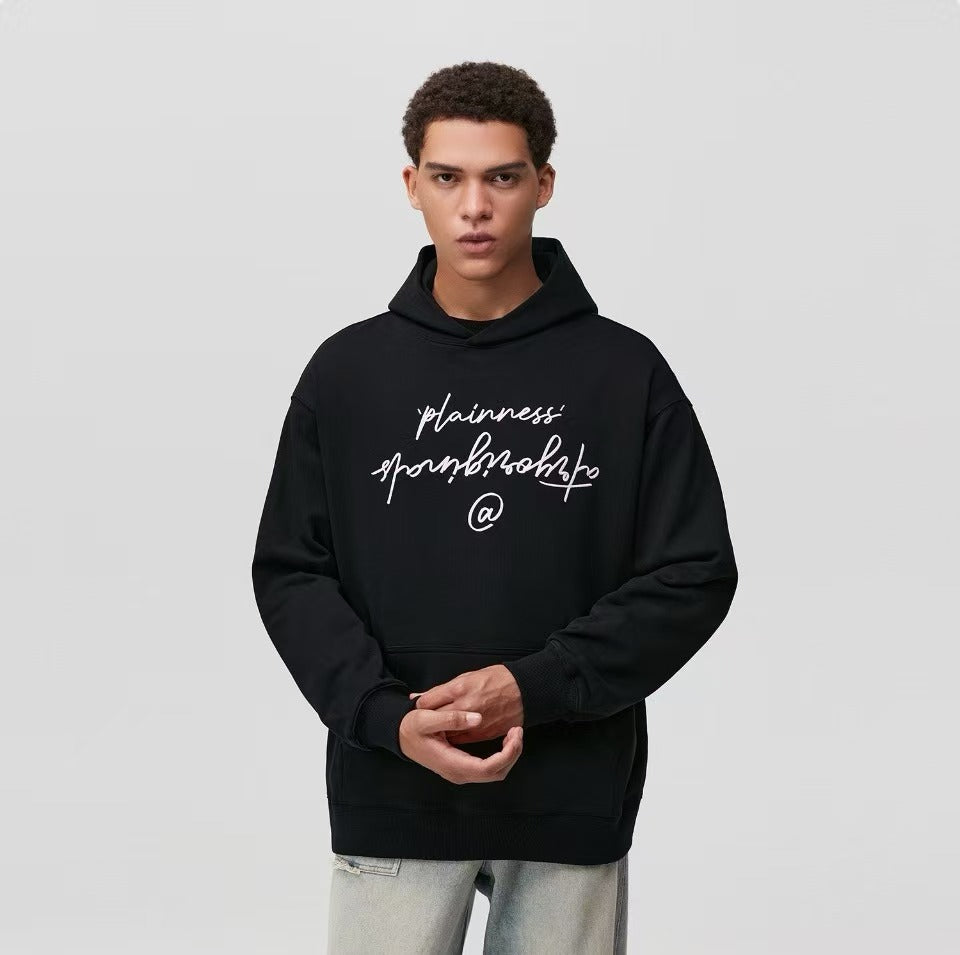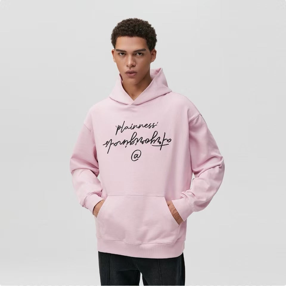 Floral Text Embroidered Flower Hoodie Casual Loose Long Sleeve Sweatshirt