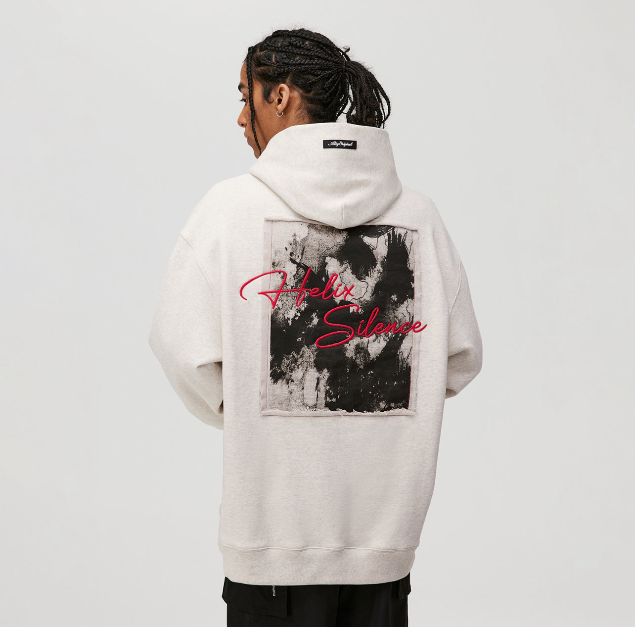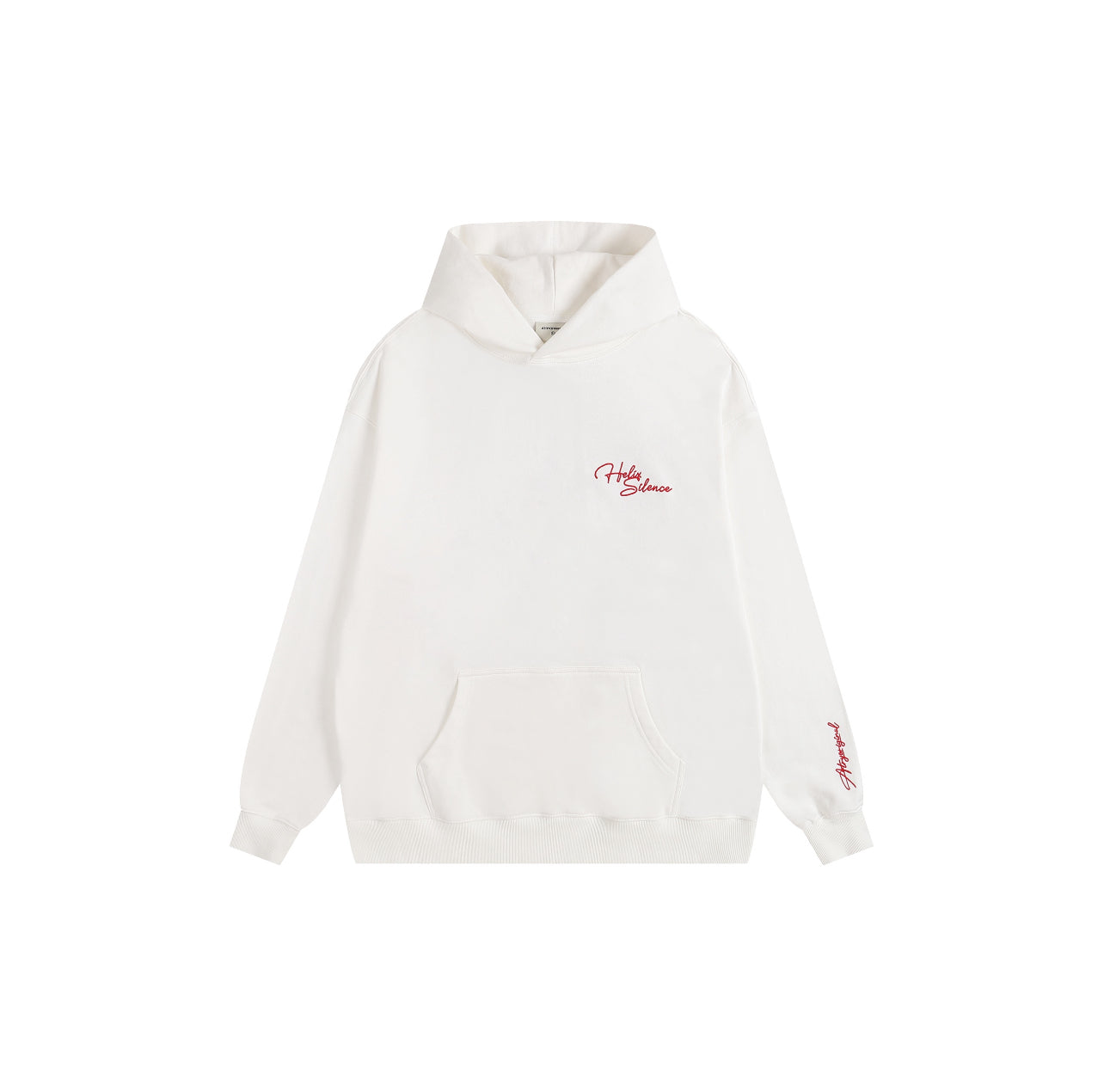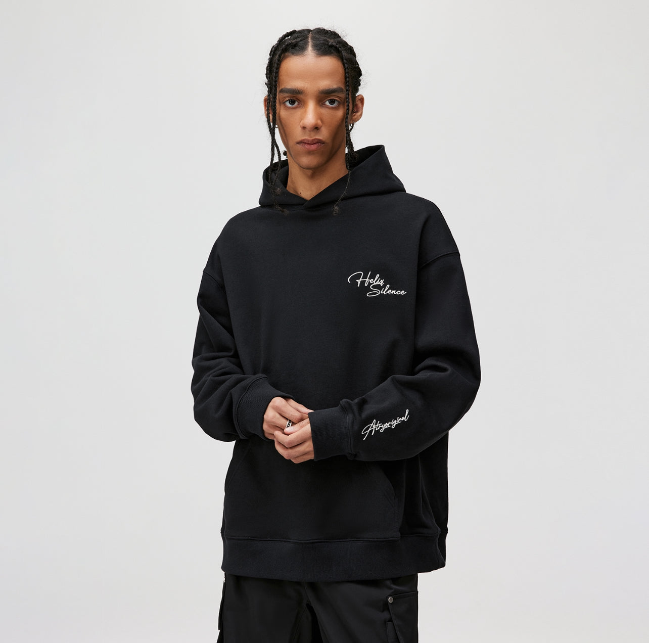 Applique Embroidered Floral Monogram Heavyweight Basic Solid Color Hooded Pullover Long Sleeve Sweatshirt