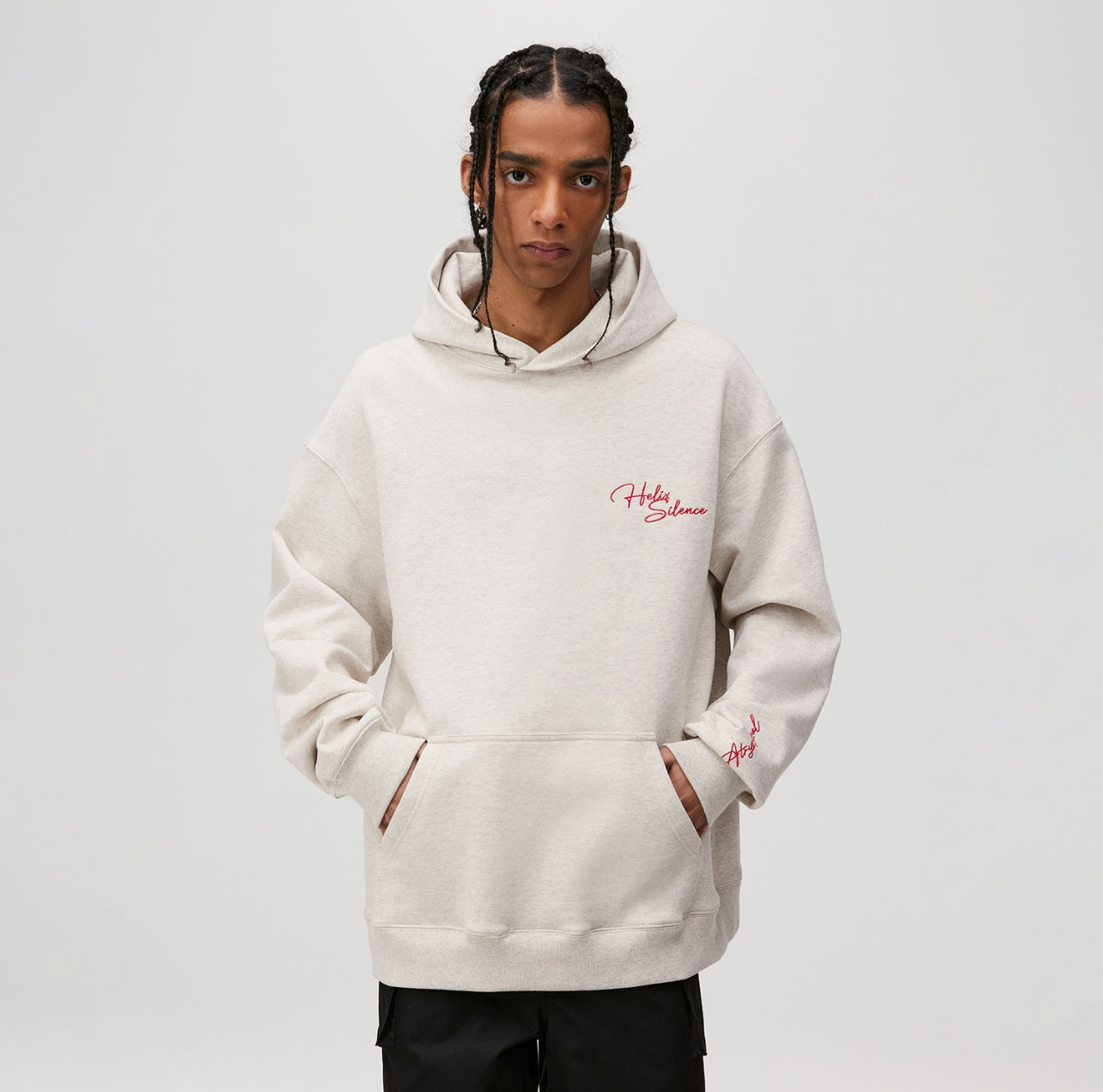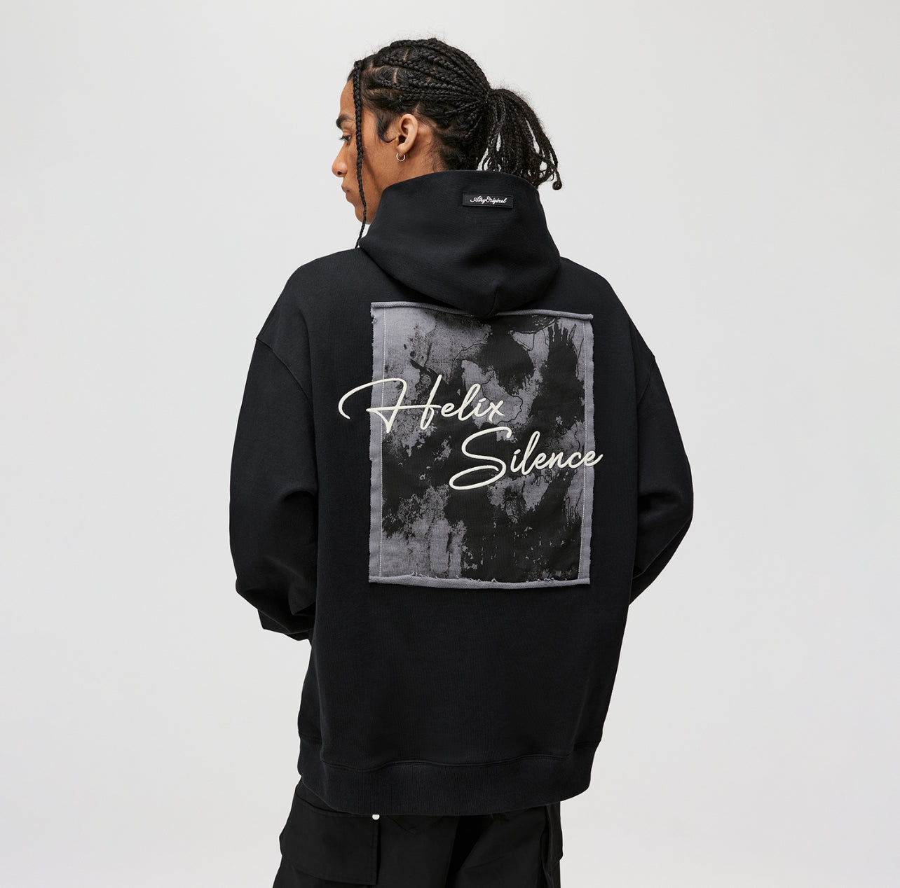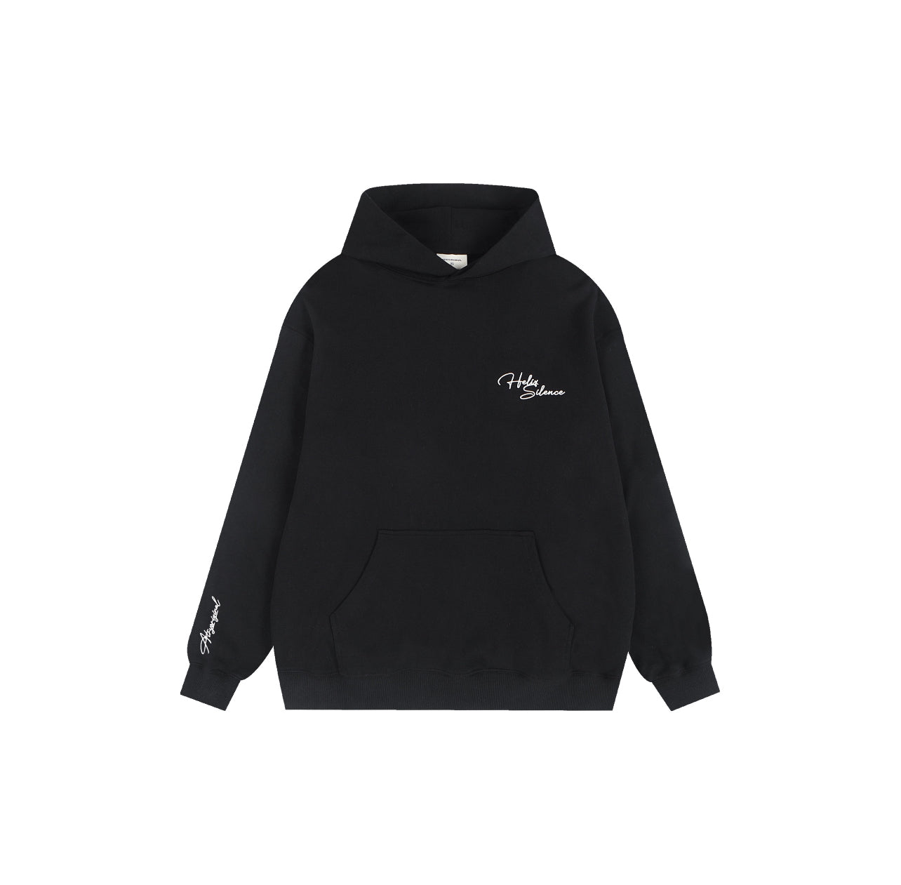 Applique Embroidered Floral Monogram Heavyweight Basic Solid Color Hooded Pullover Long Sleeve Sweatshirt
