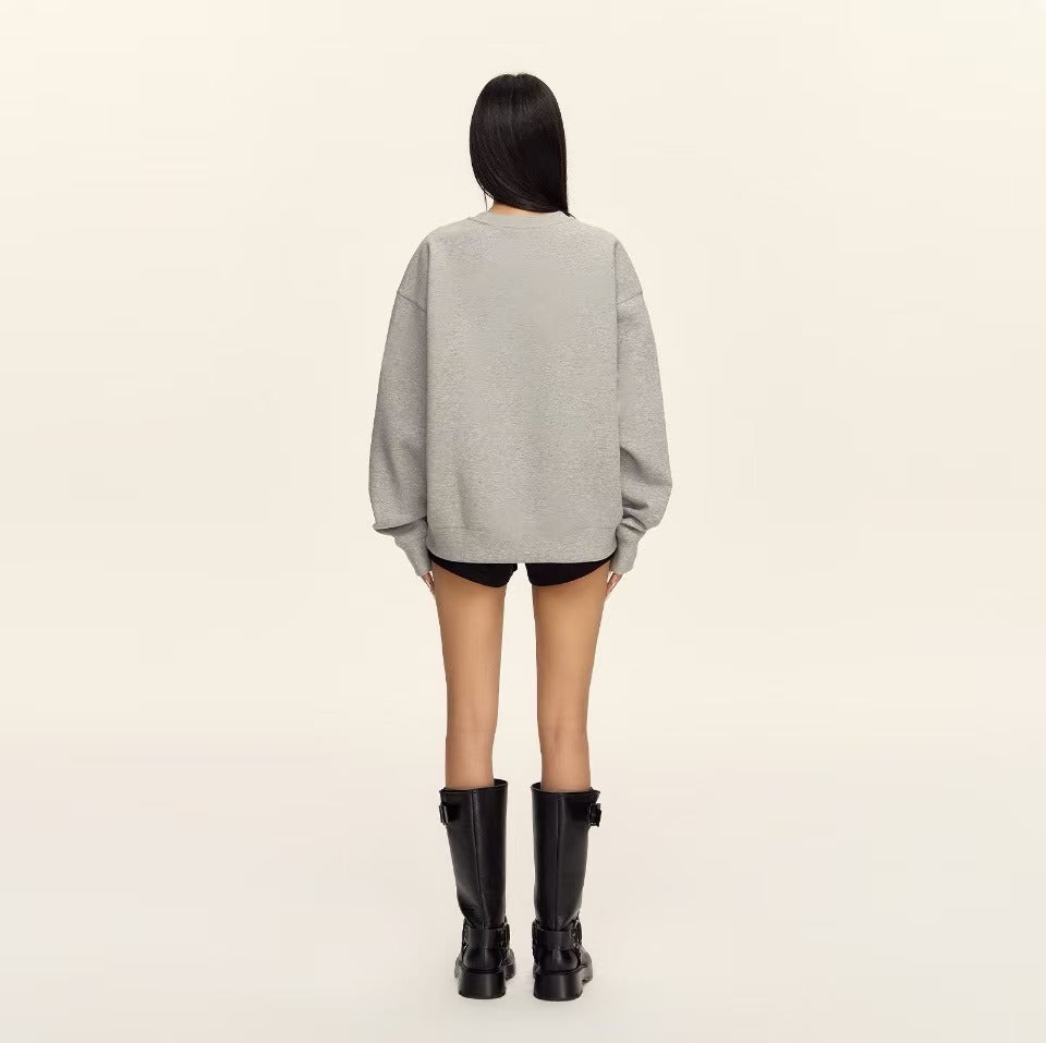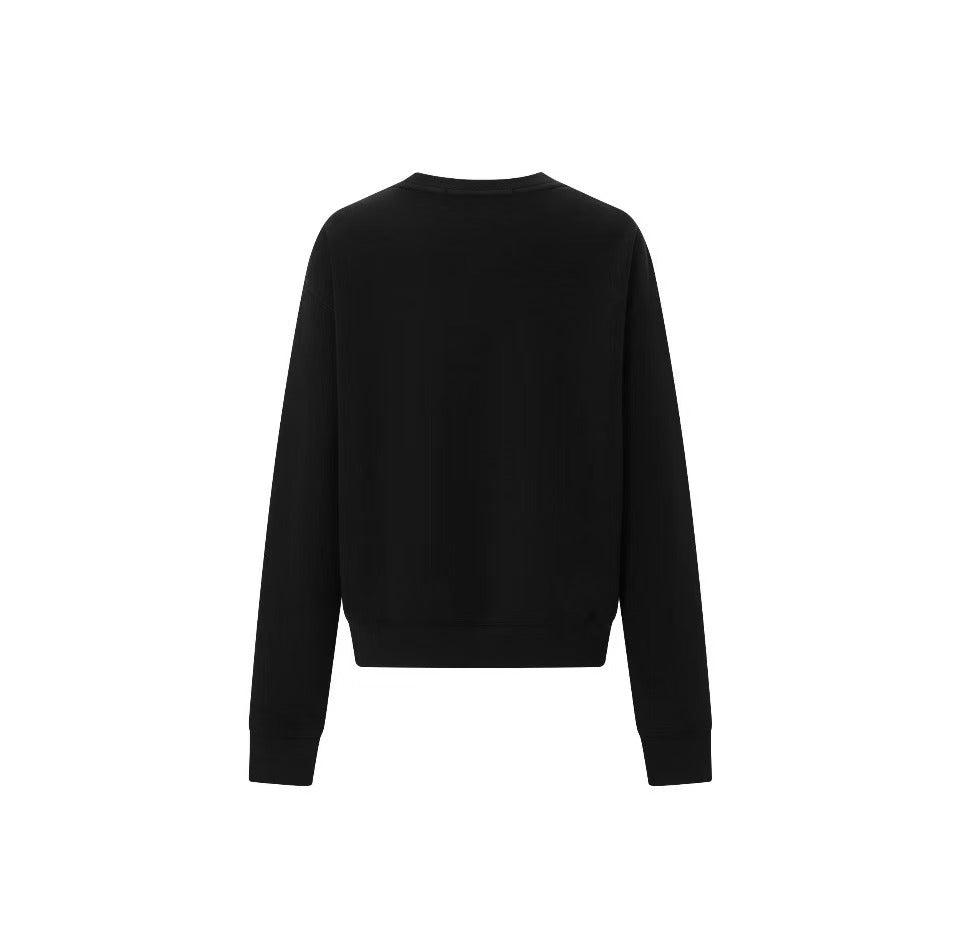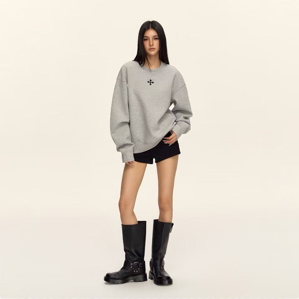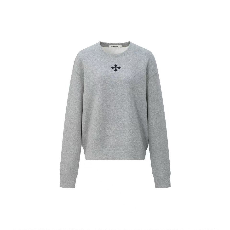 Classic retro cross print air layer fluffy silhouette casual sports breathable versatile round neck pullover sweater Women's