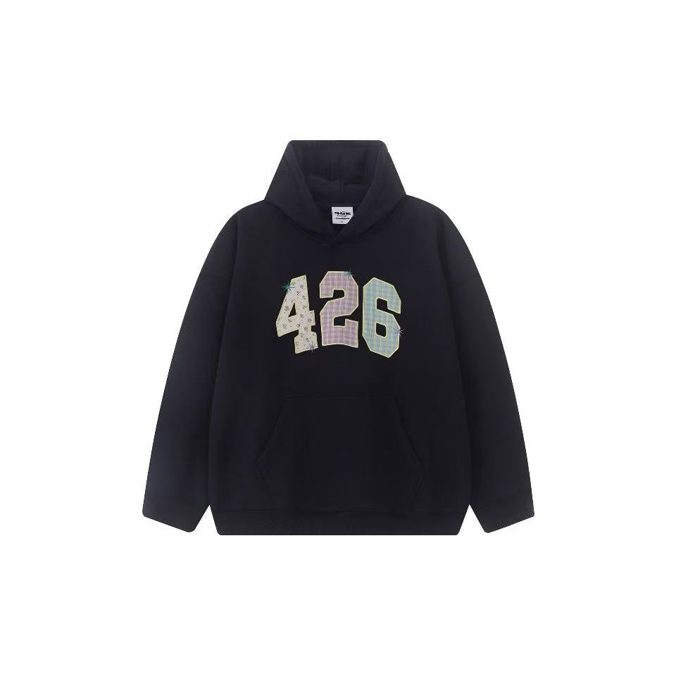 Casual Plaid Shredded 426 Patch Embroidered Sweatshirt