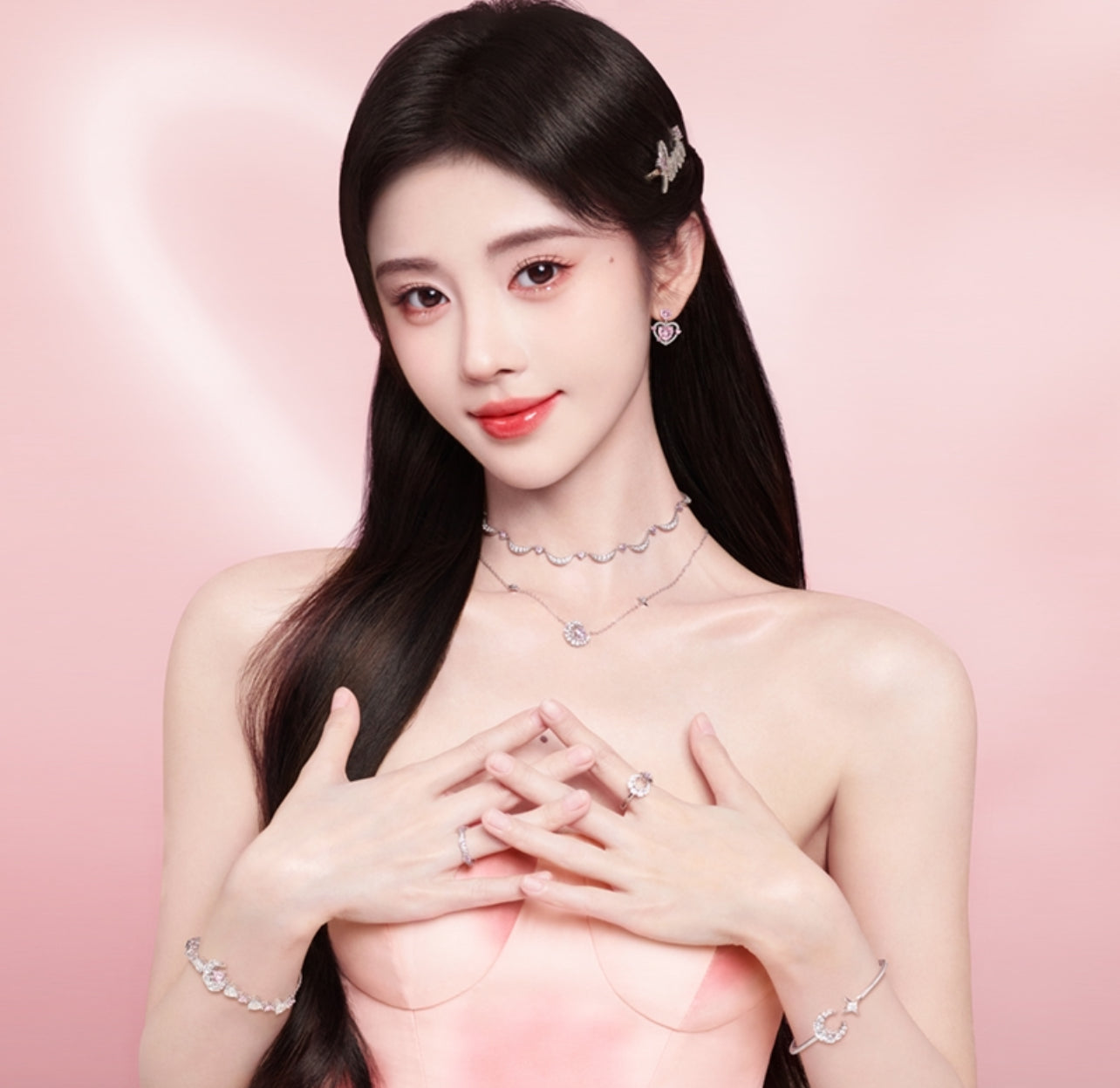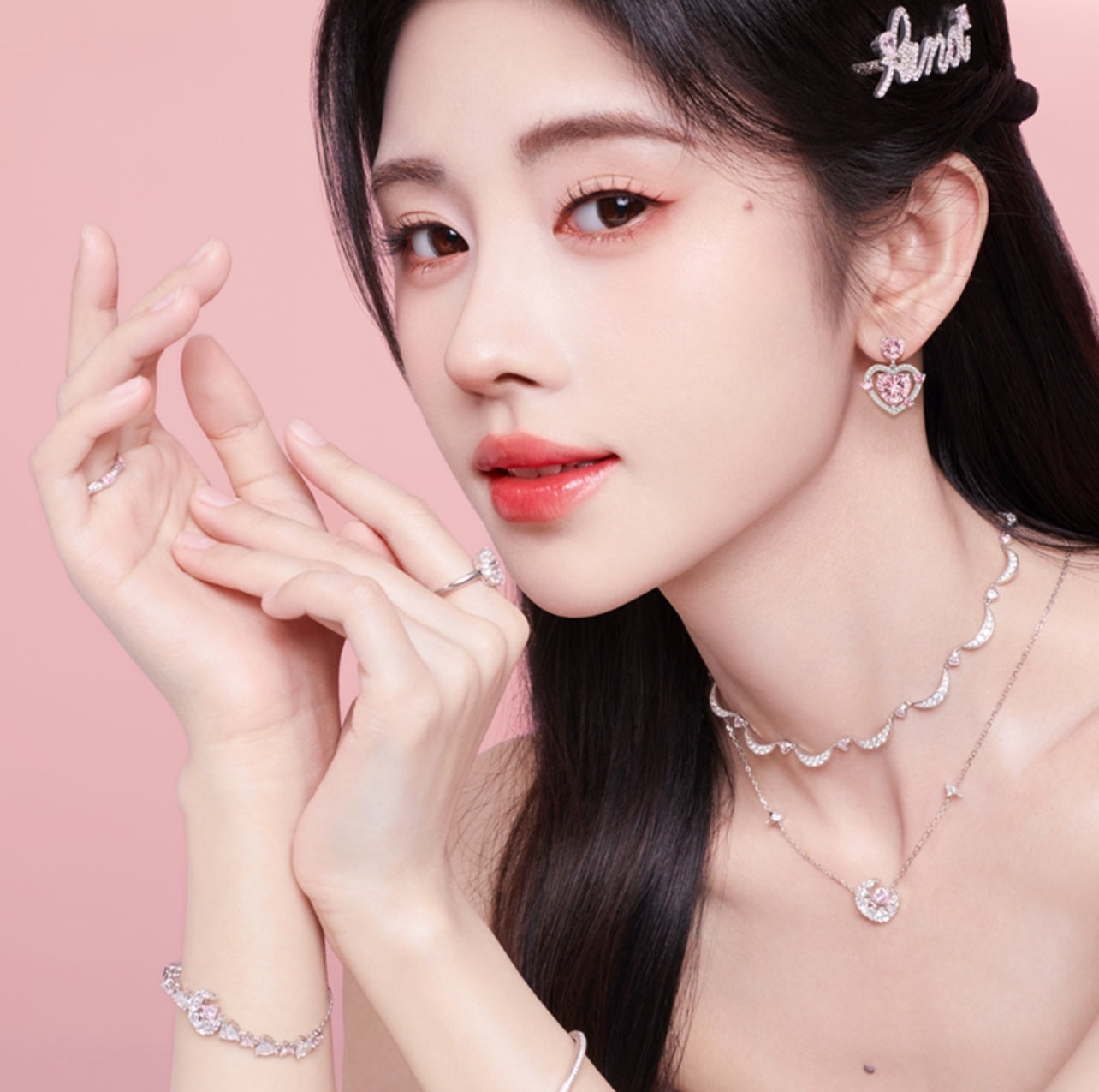 Phantasy dream heart moon series full of diamonds set moon pink stone pendant sparkling love star moon collarbone chain hundred matching gift box S925 silver necklace female models.