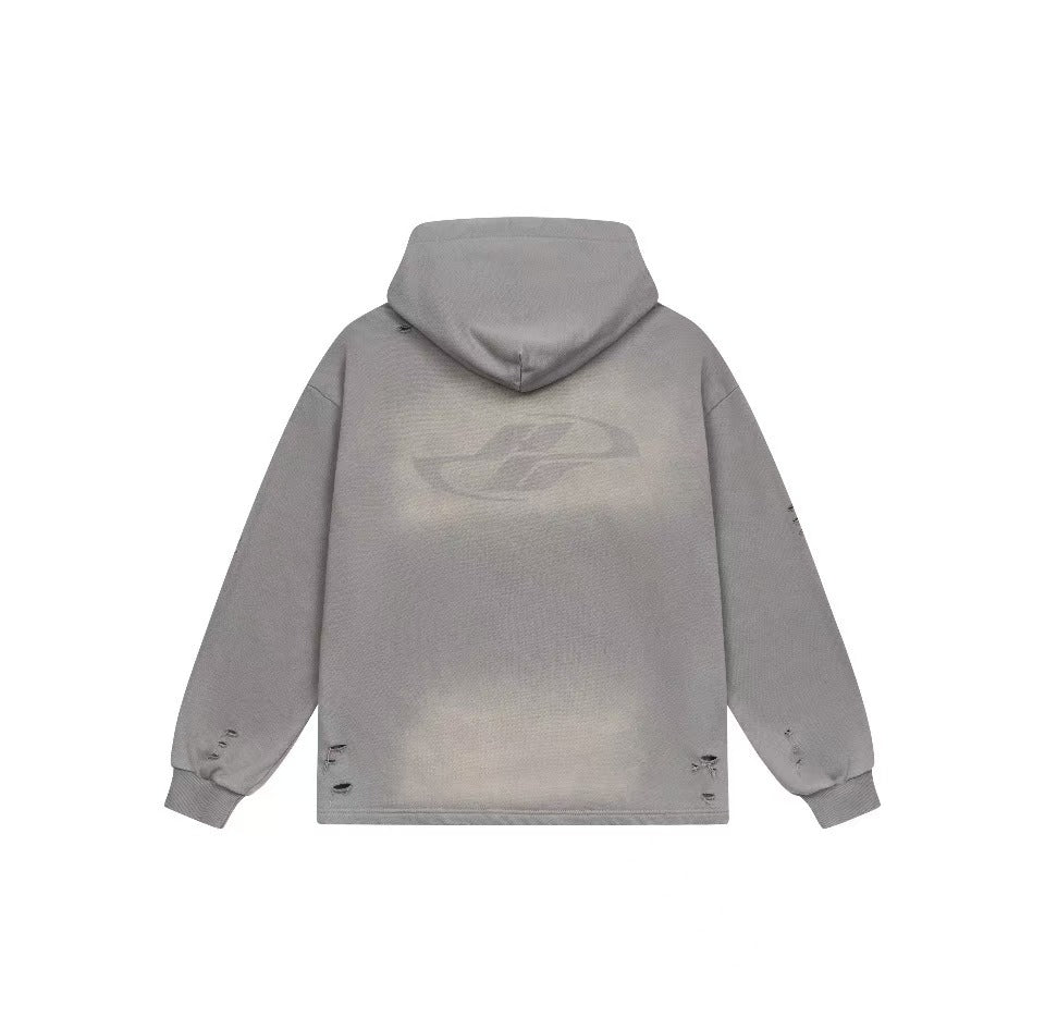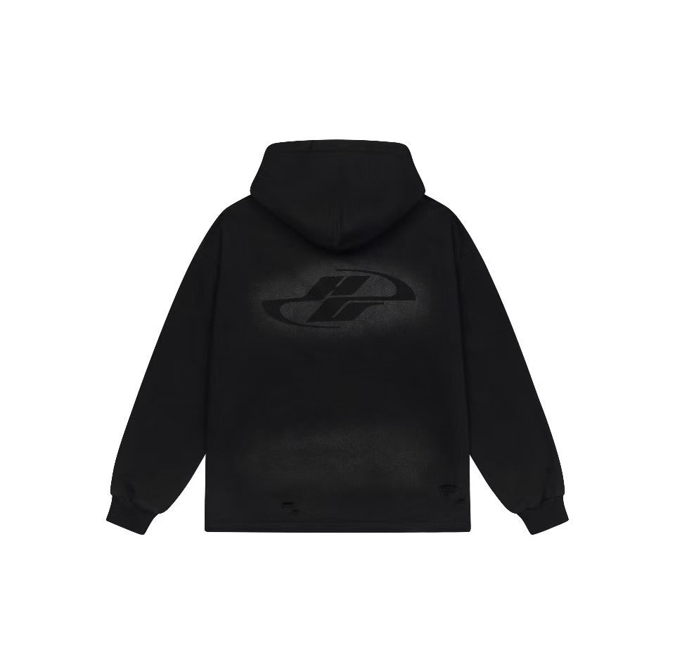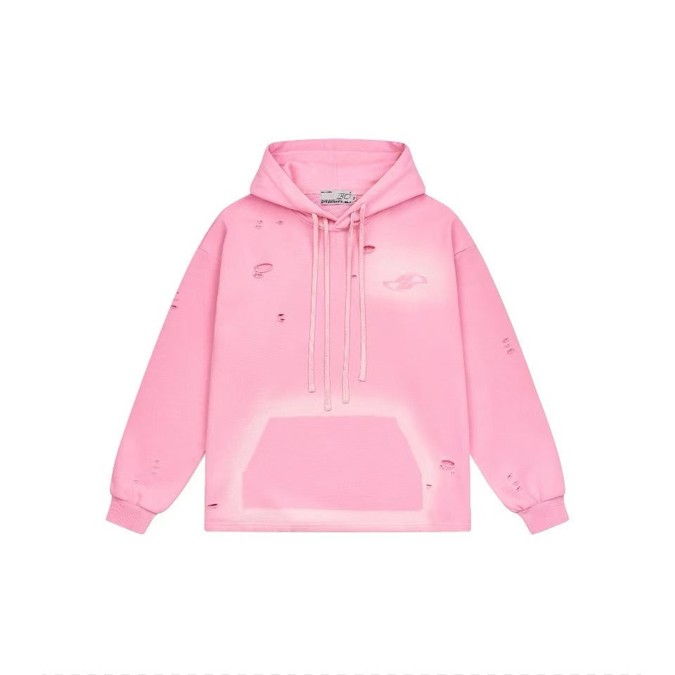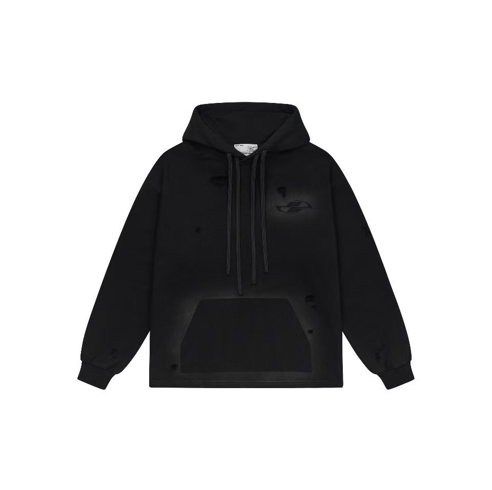 Dark Floral Wash Damage Double Hooded Rope Loose Casual Pullover Hooded Sweatshirt