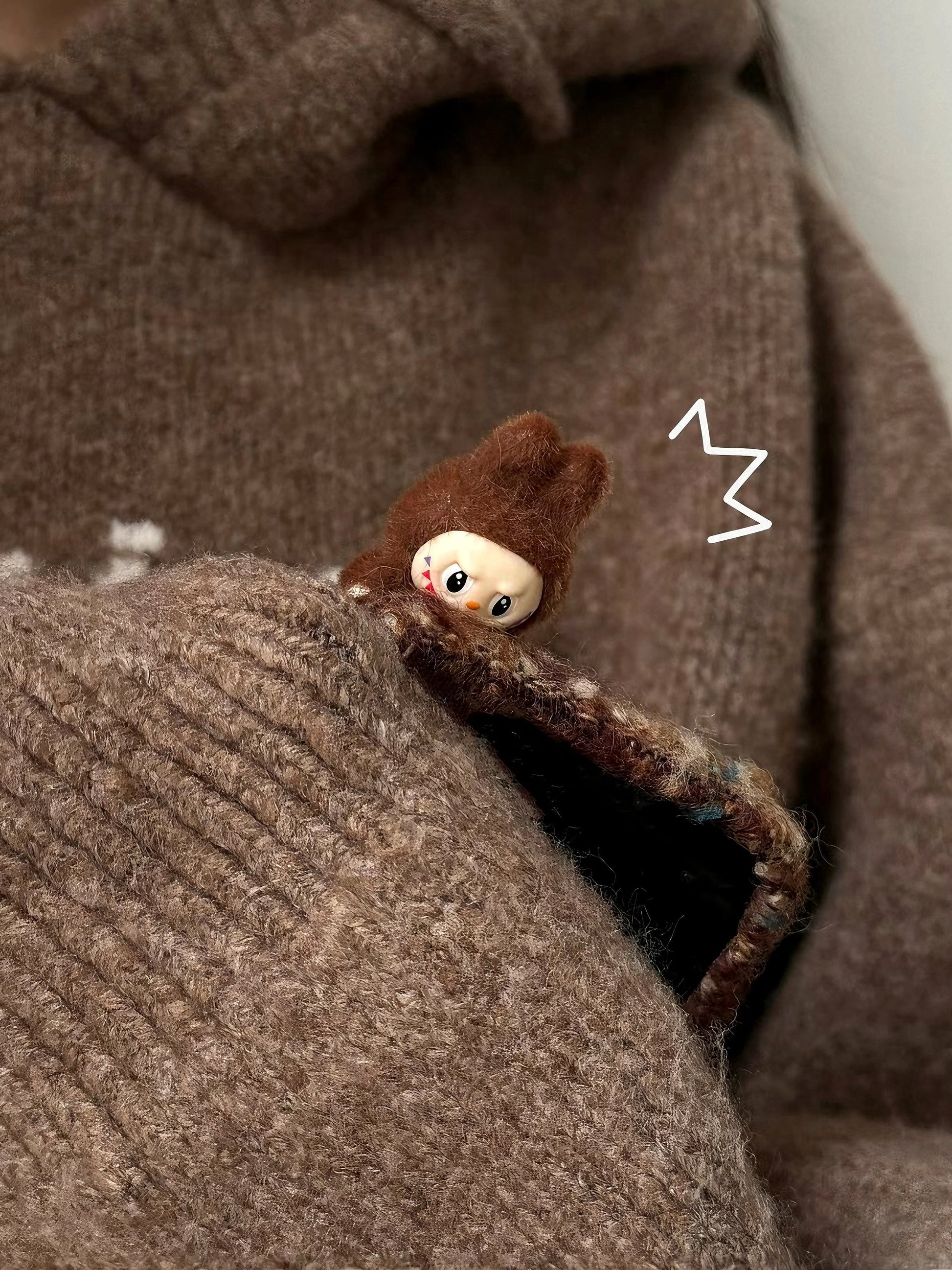 This brown plaid phone case features an adorable Labubu lounging on it. exuding a strong autumn and winter vibe. The design is not only stylish and cute but also practical. effectively protecting your phone while perfectly combining aesthetics with functionality. suitable for various occasions.