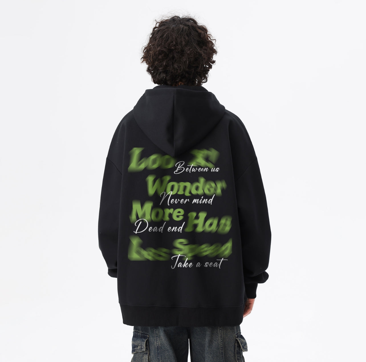 Heavy shadow phantom letter print. Hip hop fun color collision loose casual pullover hooded sweatshirt Men and women's models