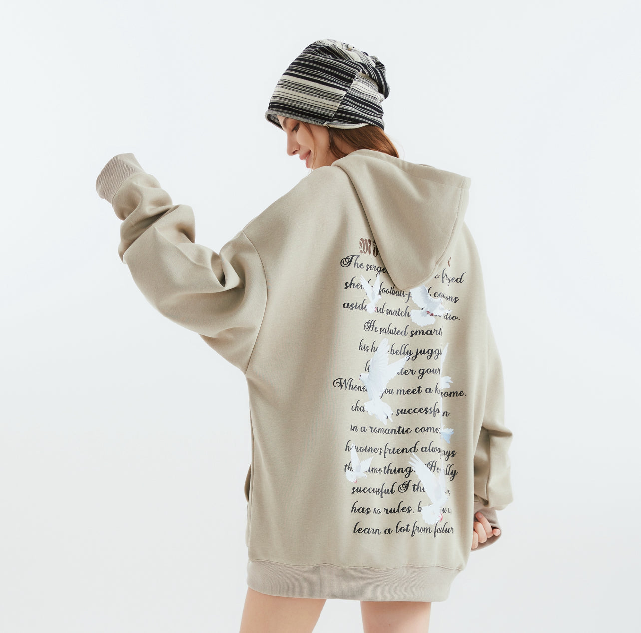 Dove Gothic letters thickened warm solid color simple loose casual top coat jacket drop shoulder heavyweight long-sleeved Merad pullover hooded sweatshirt men and women alike