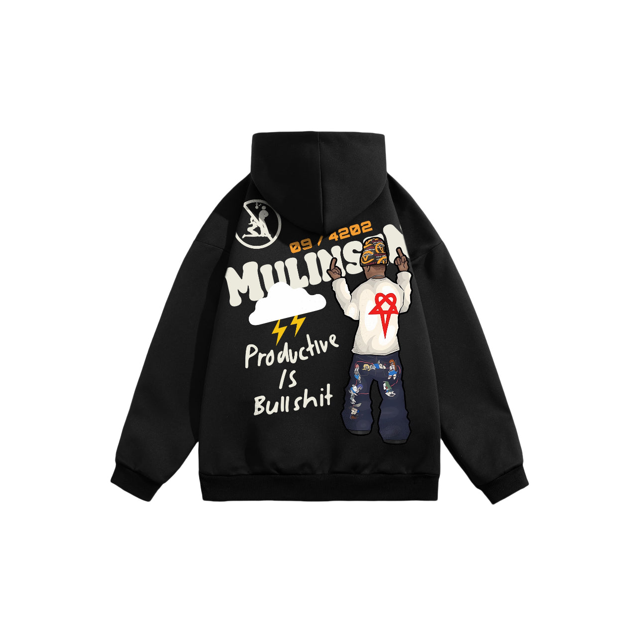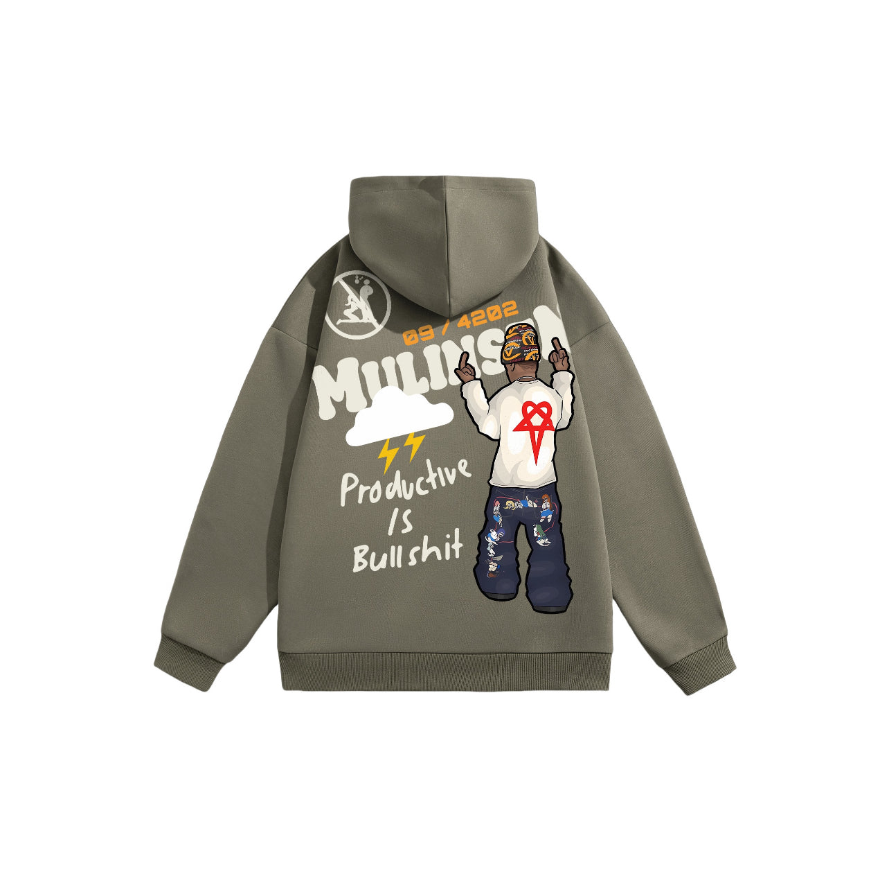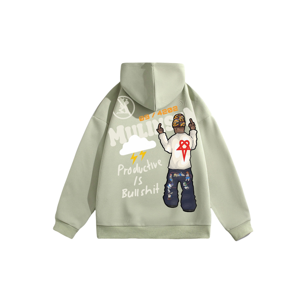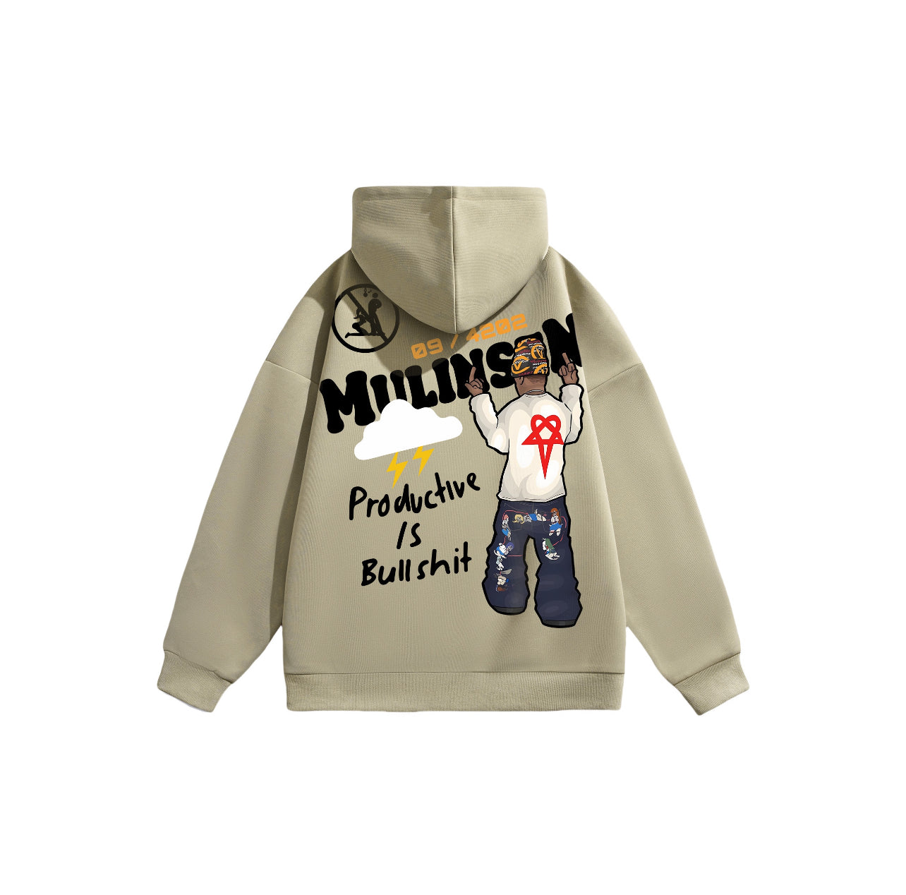 Trendy personalized cartoon characters letter pattern loose loose large drop shoulder padded thickened hooded sweater men and women with the same paragraph