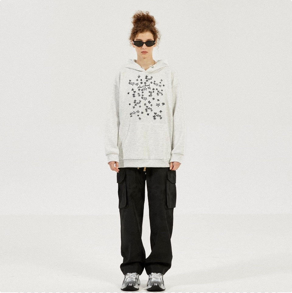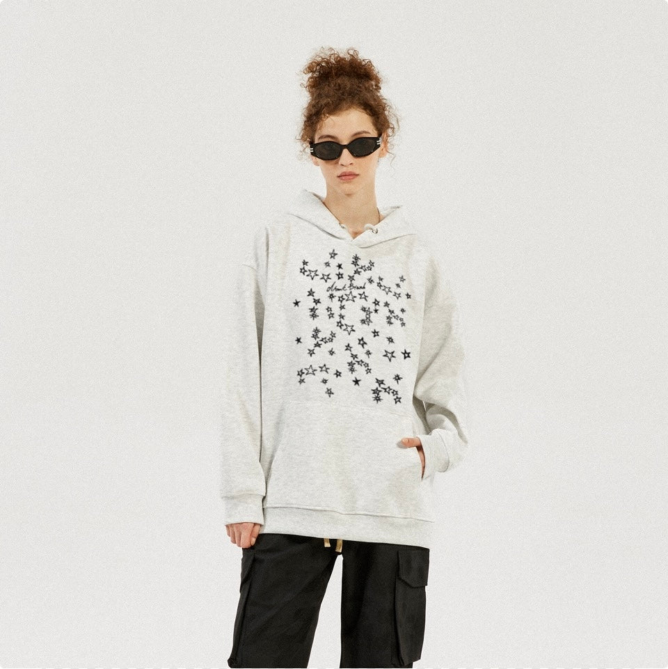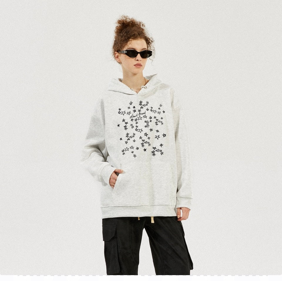 Printed casual hip-hop loose heavyweight matching hooded pullover shoulder long-sleeved sweater men and women with the same models