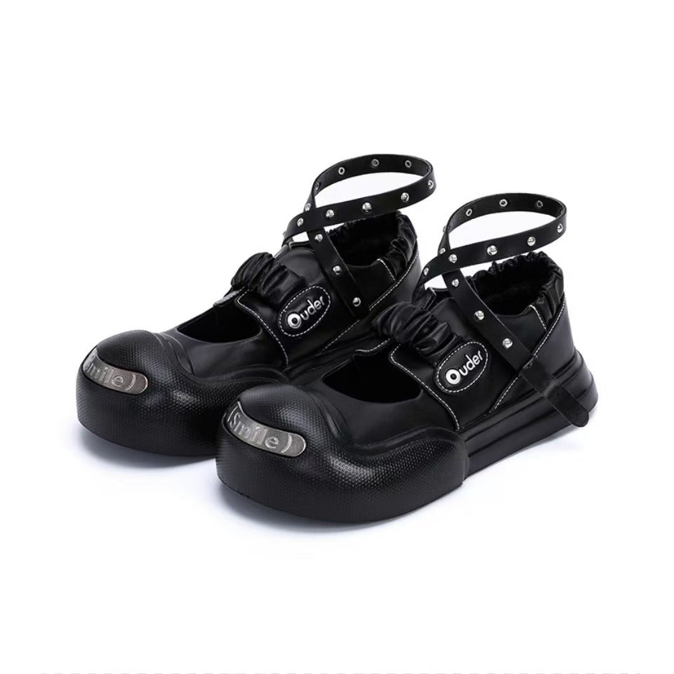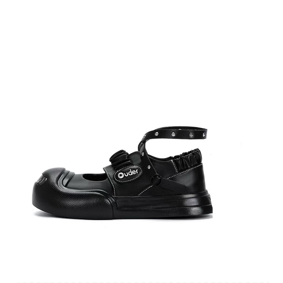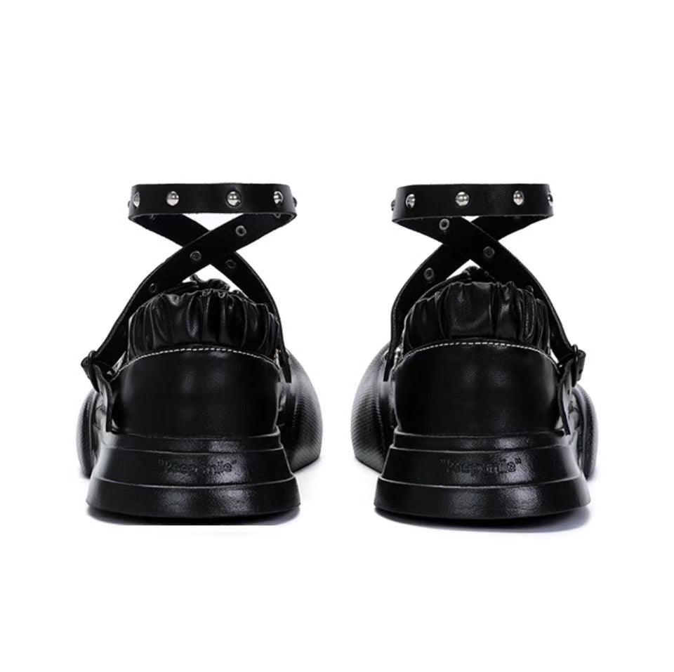 Swan Dance Dark Leather Strappy Ballet Mary Jane Shoes Women's Black Swan