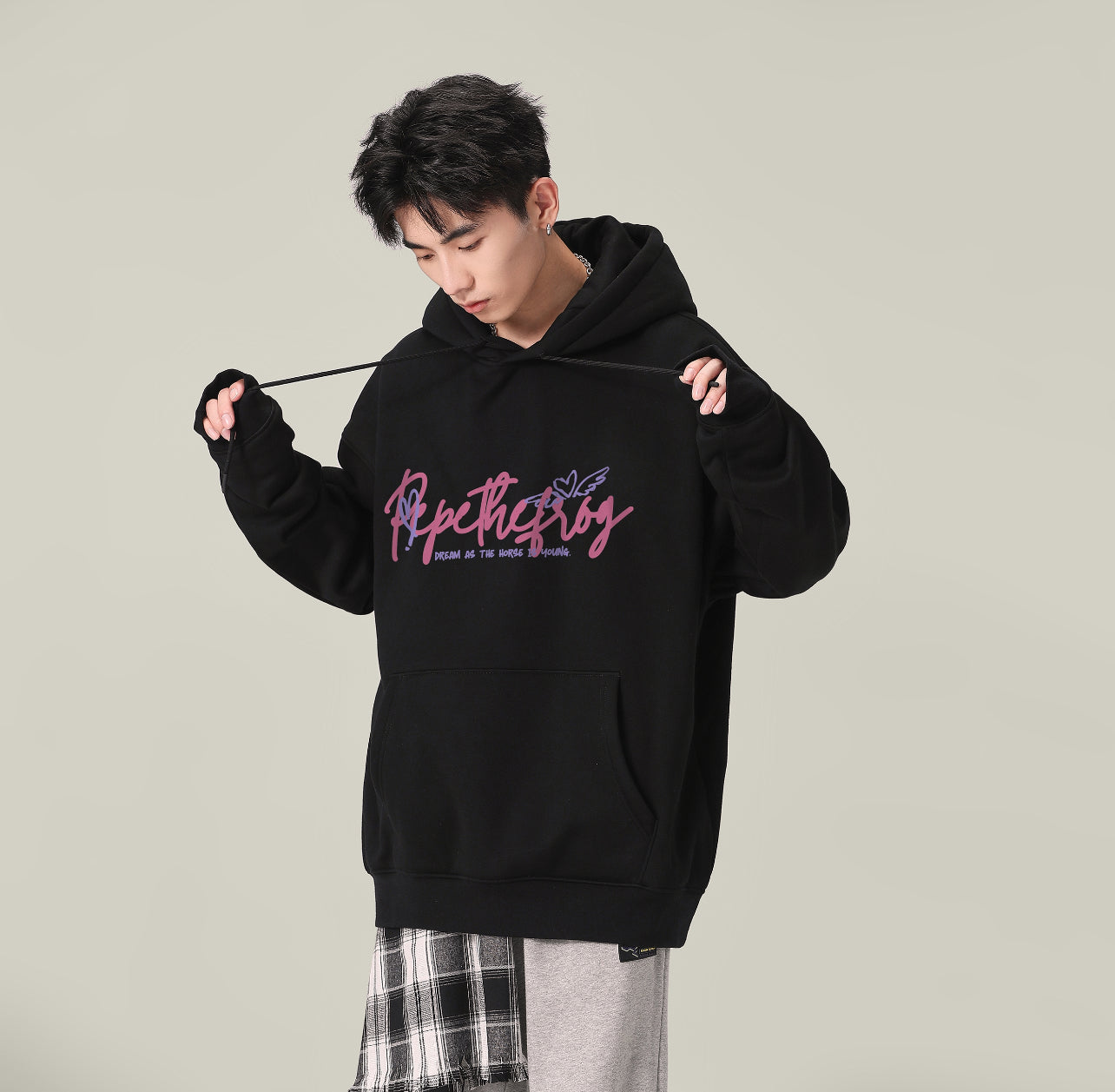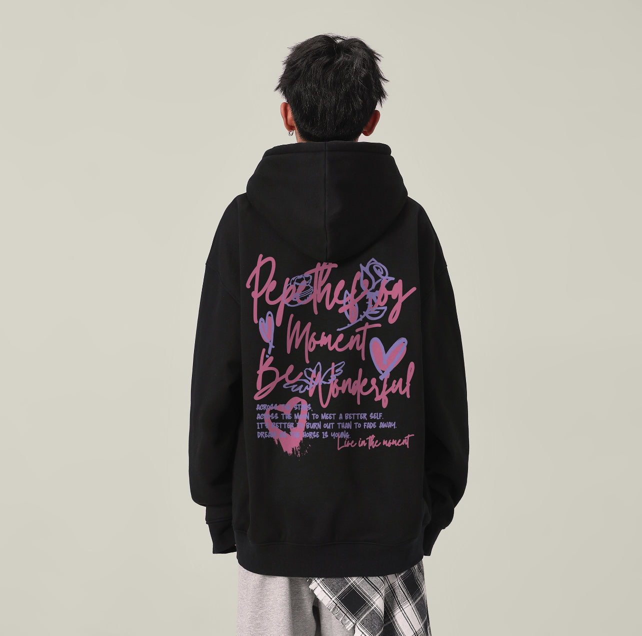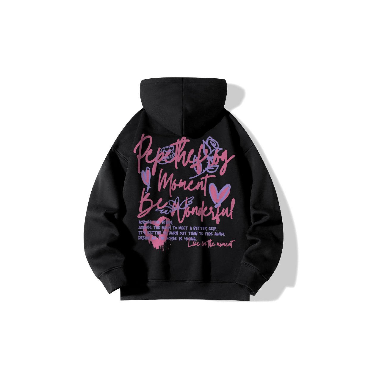 College style cartoon hand-painted letters graffiti printing loose casual pullover hooded sweatshirt men and women with the same models
