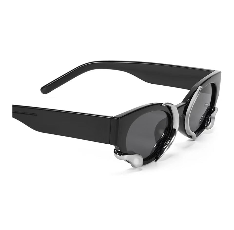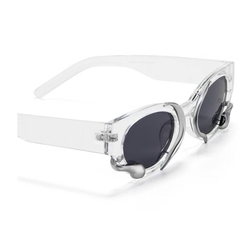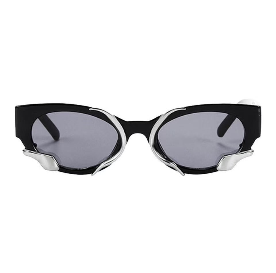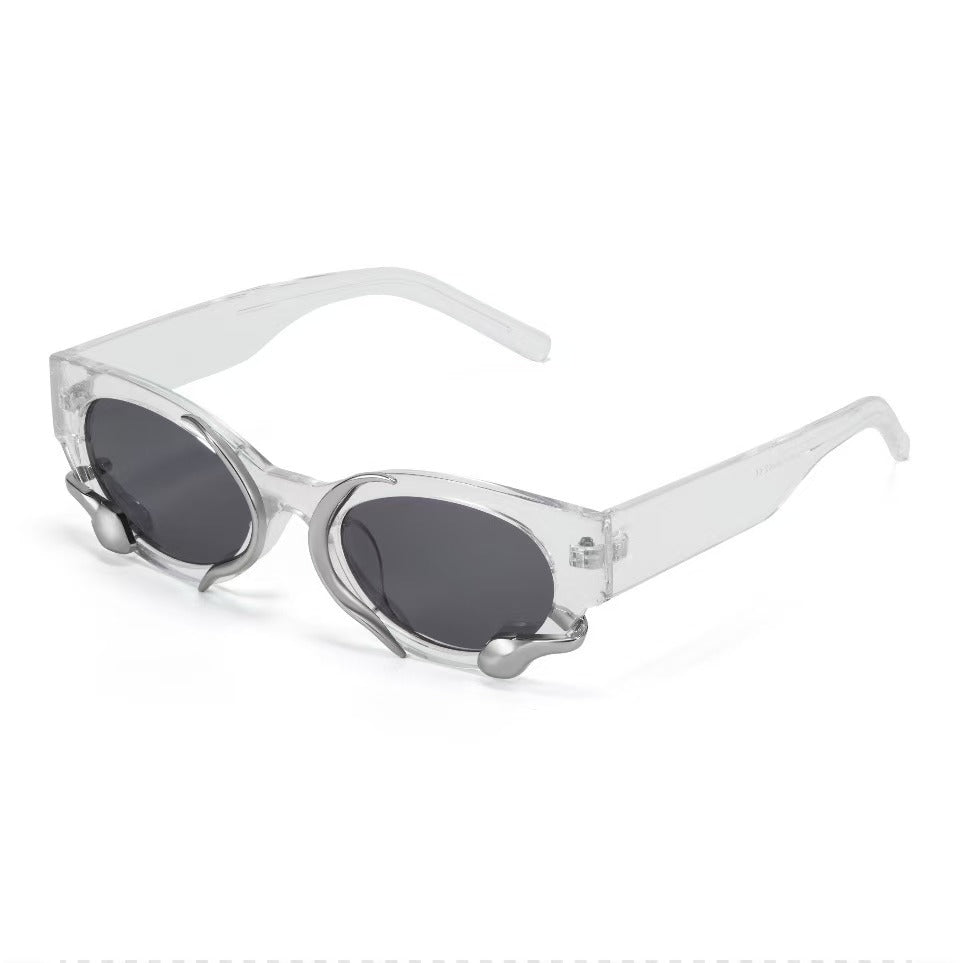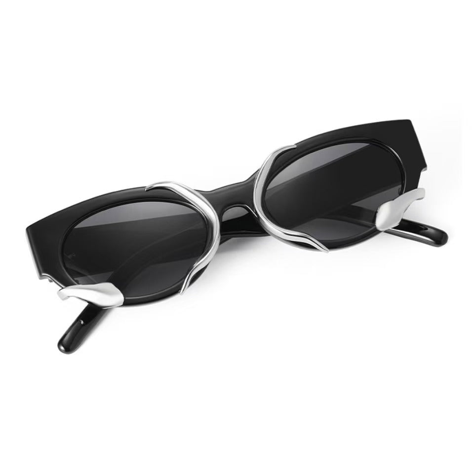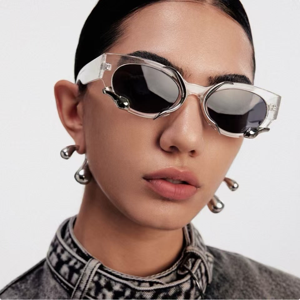 Millennium retro personality cool Europe and the United States cyberpunk niche metal texture style lightweight versatile vegan sunglasses PC oval sunglasses.