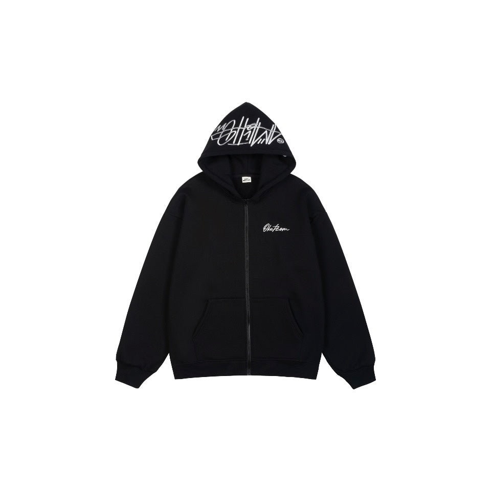 Hand-painted graffiti embroidery flower body casual hip-hop with loose heavyweight padded hooded sweatshirt jacket Men and women with the same model couple models