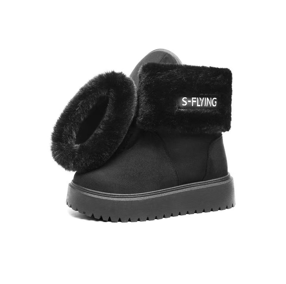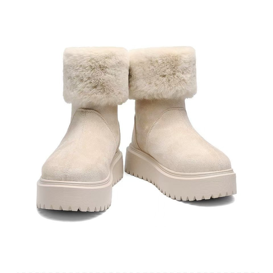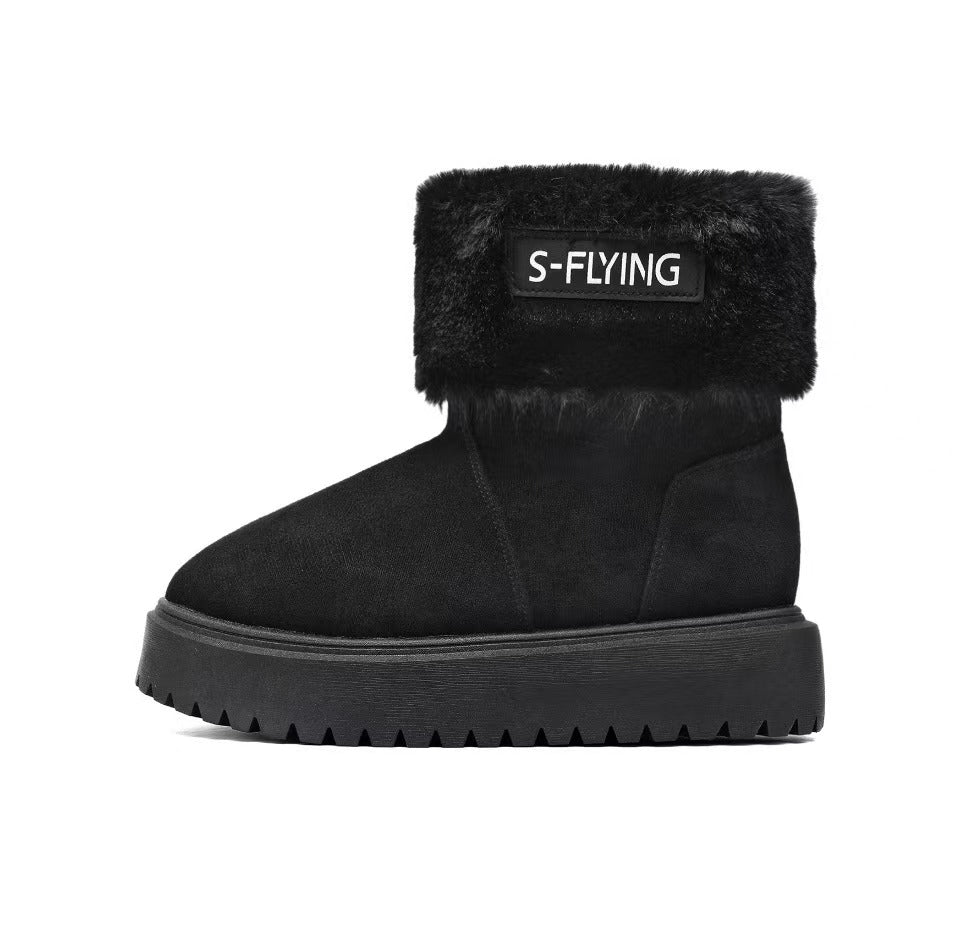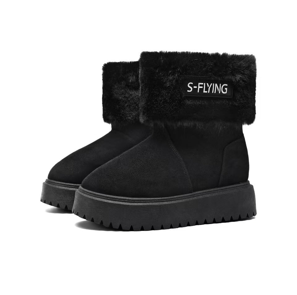Thick-sole 3.5cm height-added velvet fur collar lining cotton shoes mid-calf snow boots