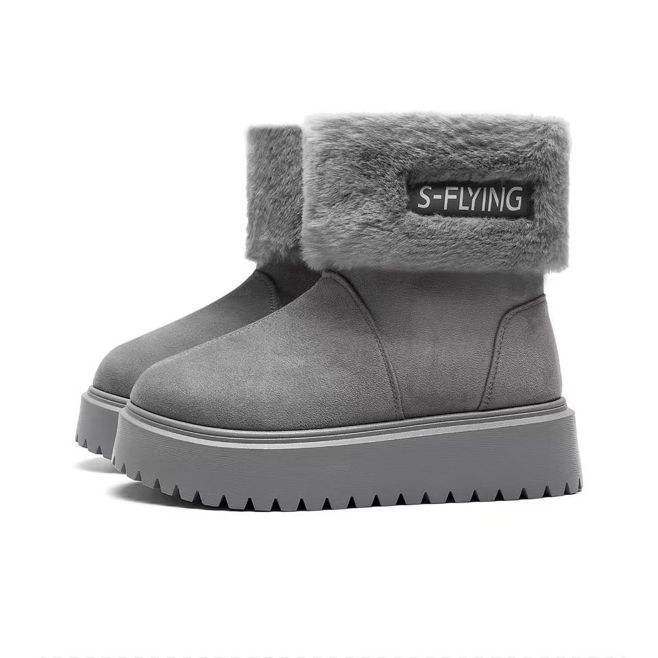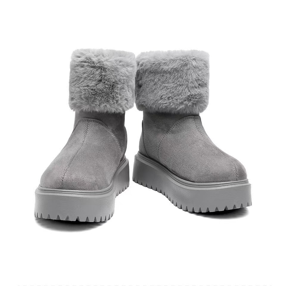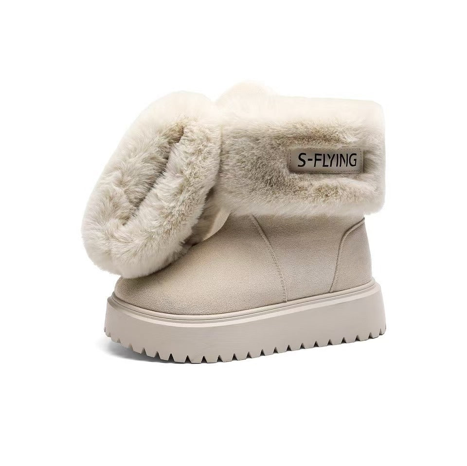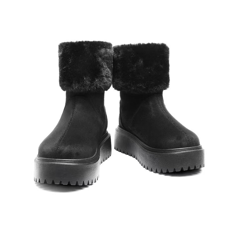 Thick-sole 3.5cm height-added velvet fur collar lining cotton shoes mid-calf snow boots