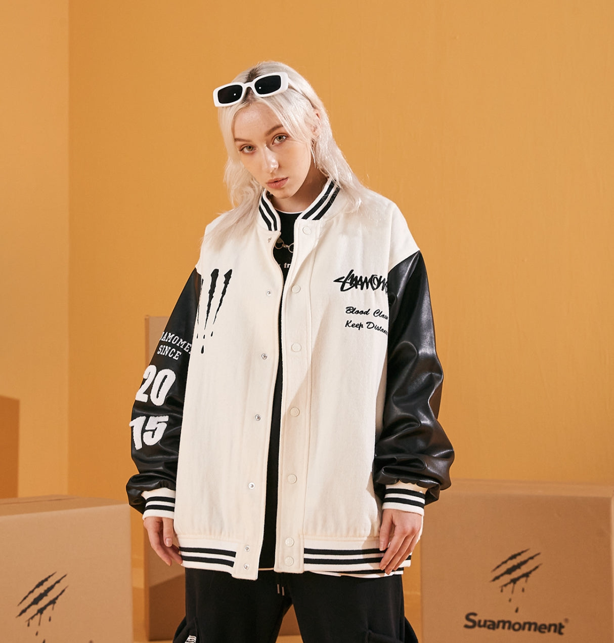 Letter logo embroidery splicing loose casual sports jacket versatile jacket American baseball jacket.