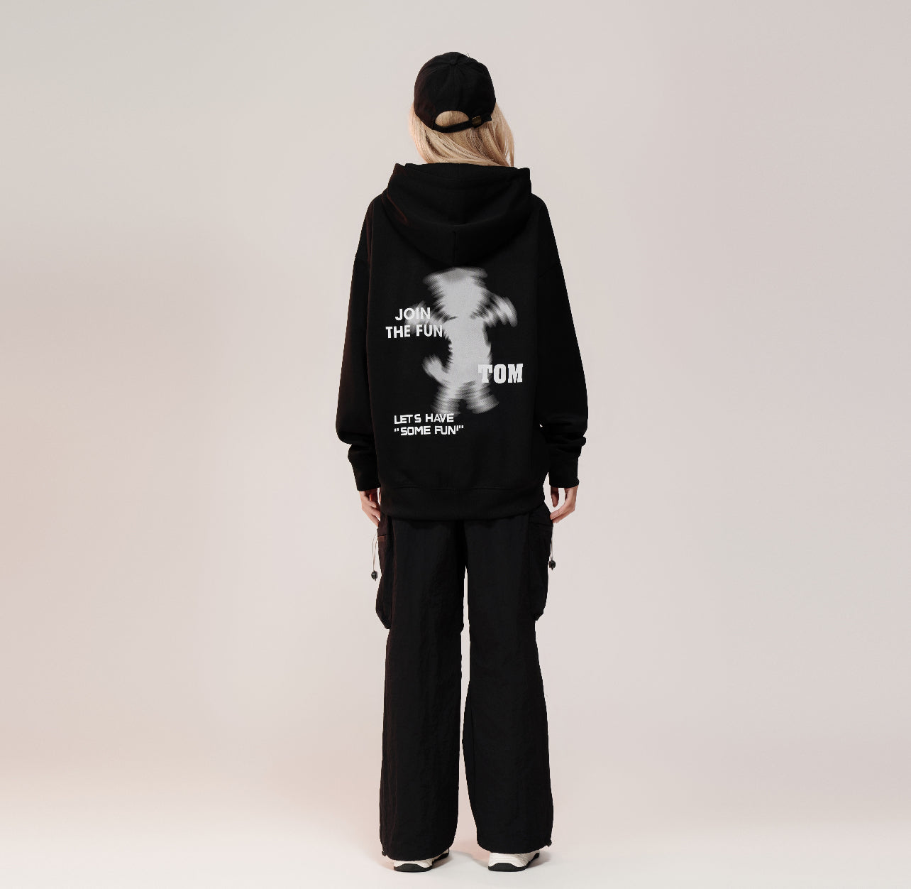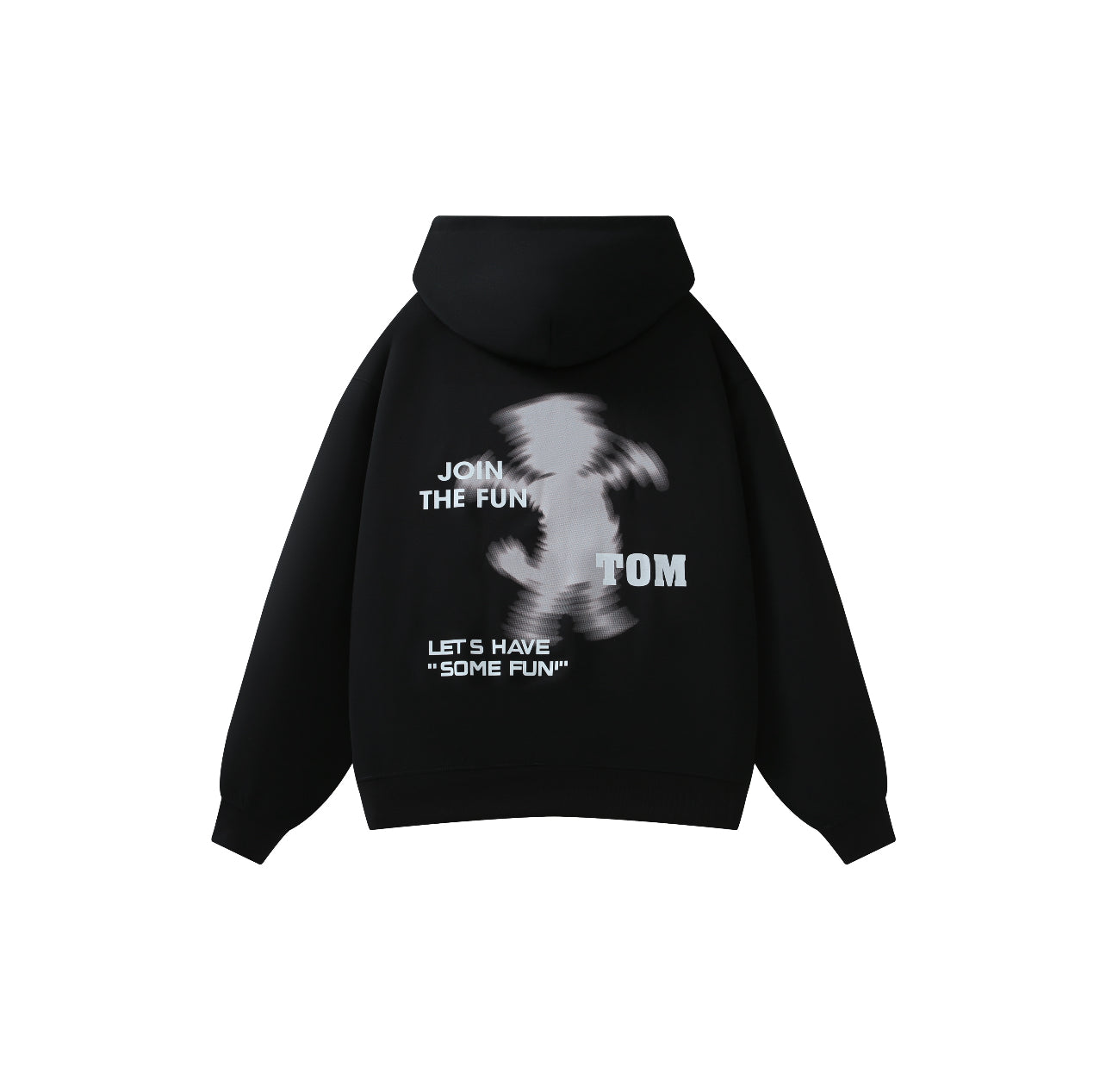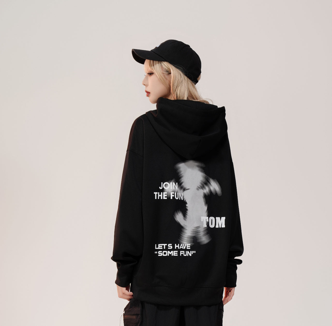 Talking Tom Cat Unreal Silhouette Character Letter Printed Thick Loose Casual Off Shoulder Pullover Hooded Sweatshirt