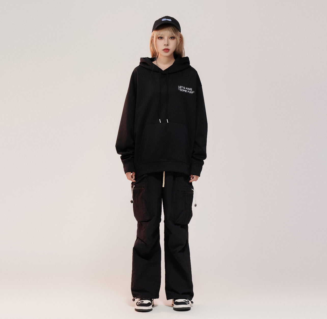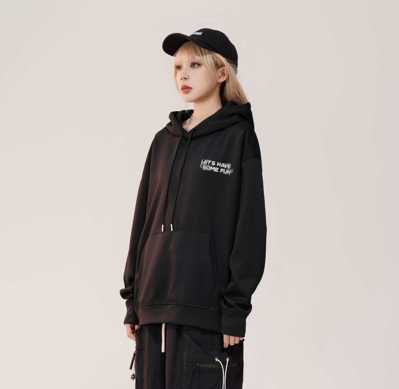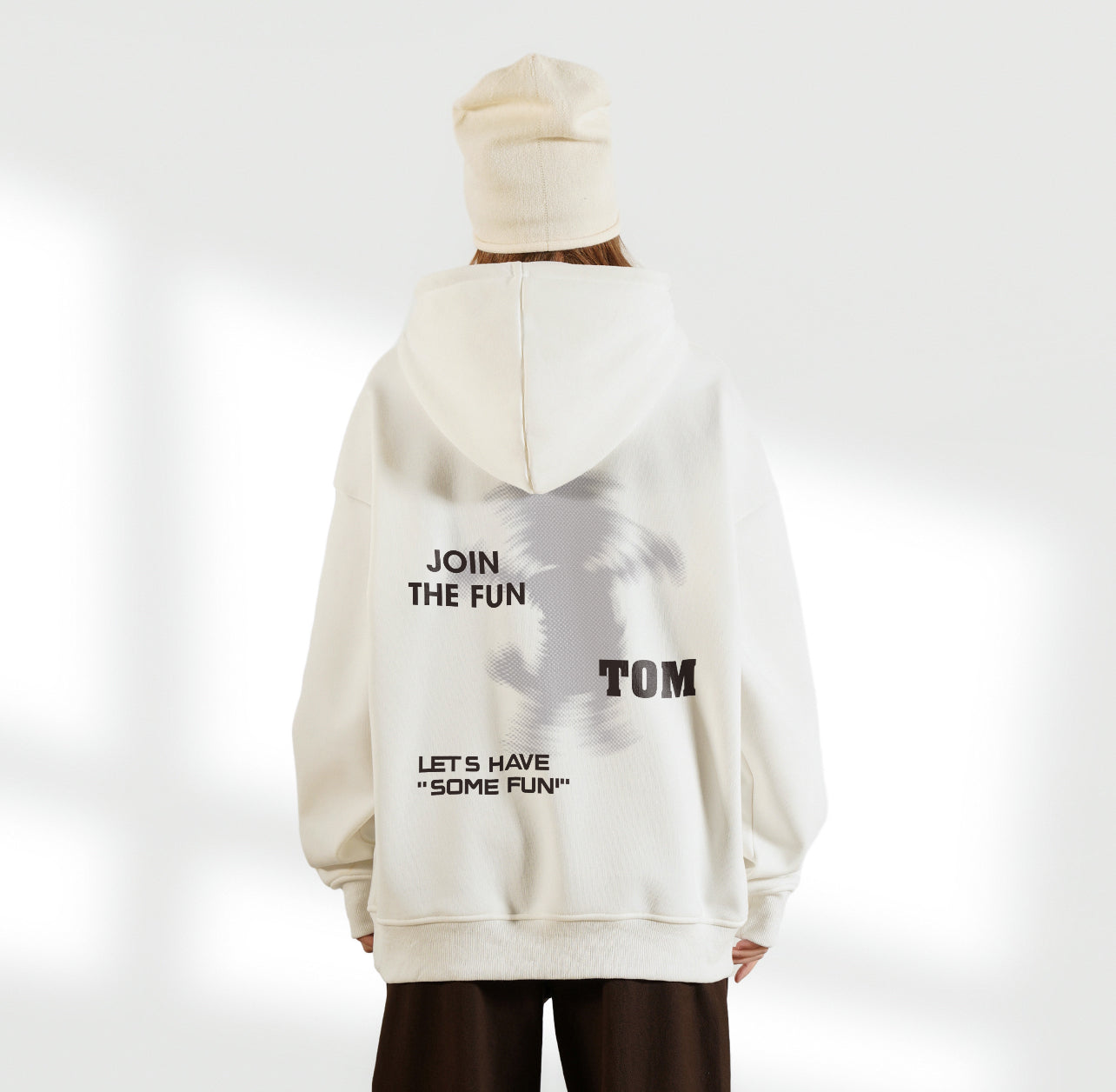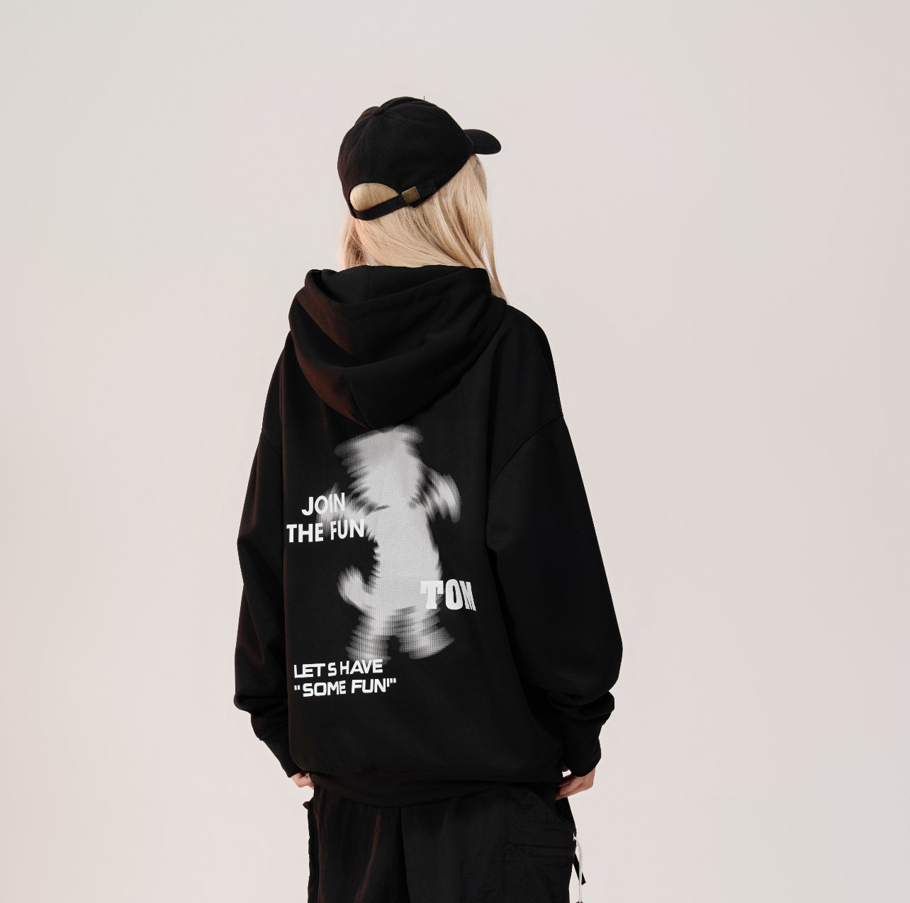 Talking Tom Cat Unreal Silhouette Character Letter Printed Thick Loose Casual Off Shoulder Pullover Hooded Sweatshirt