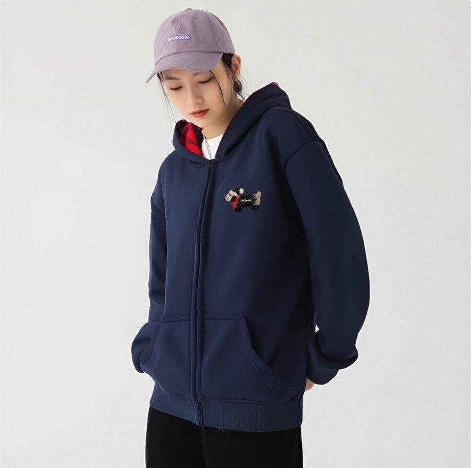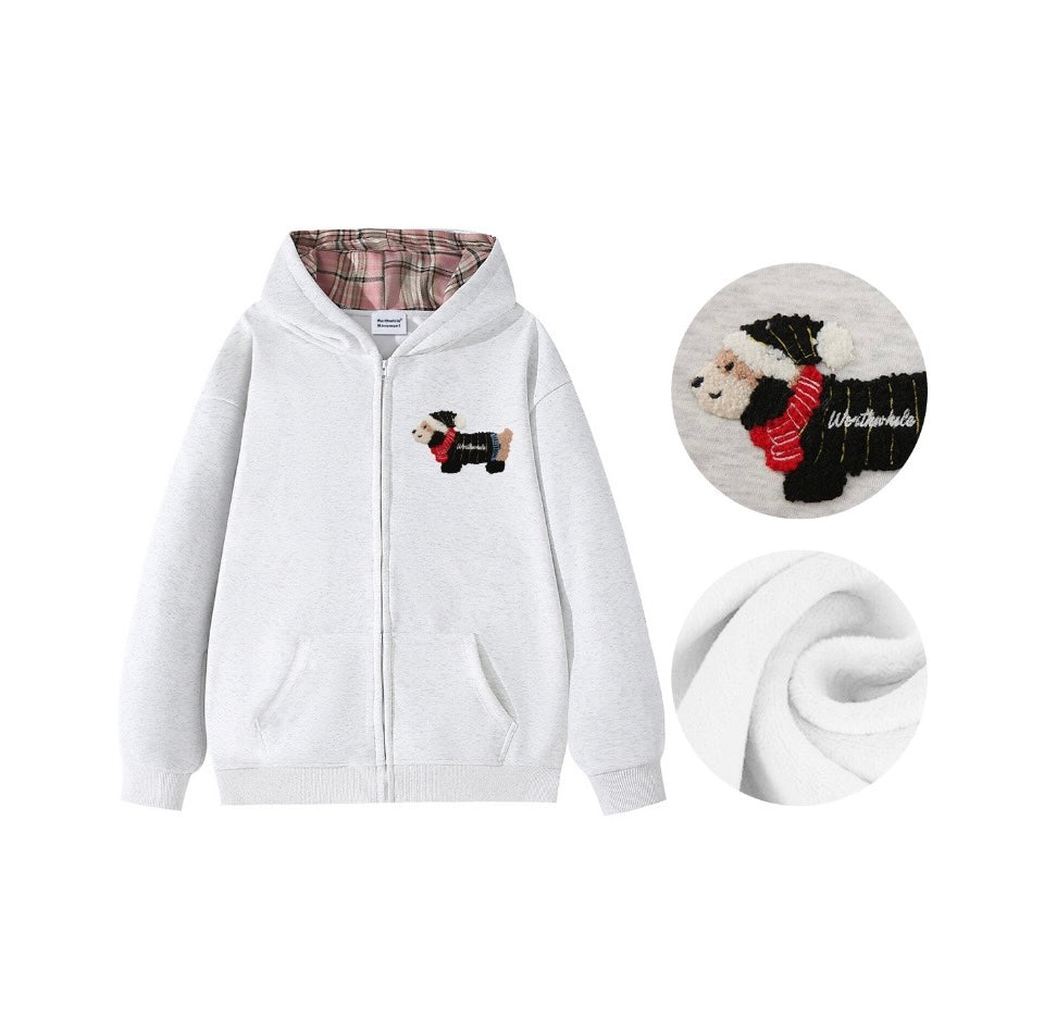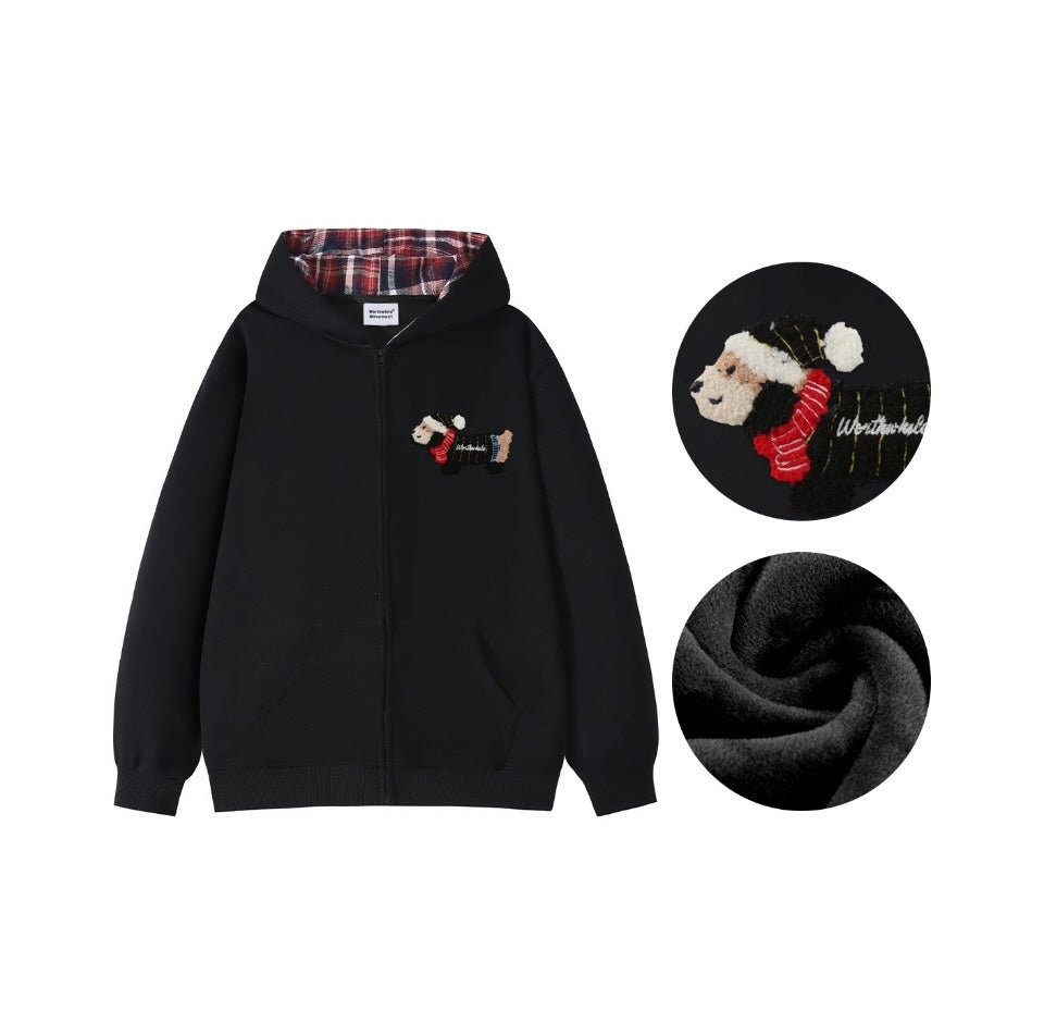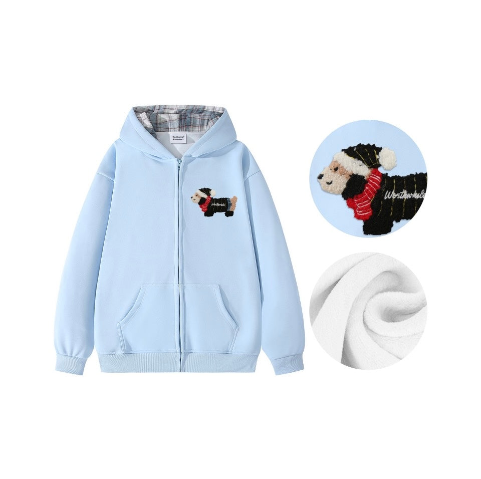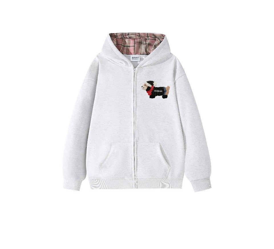 Towel Embroidery Padded Dachshund Jacket Basic Loose Heavyweight Hooded Peplum Casual Cardigan Sweatshirt